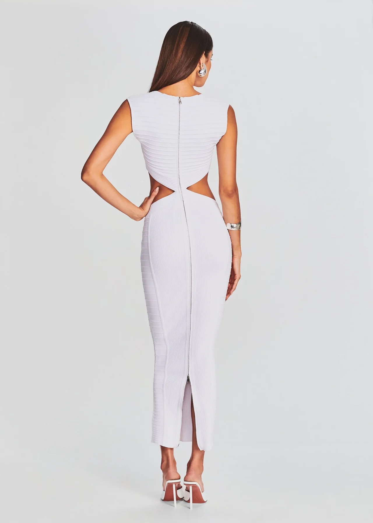 Summer White Zipper Maxi Dress with Cutouts