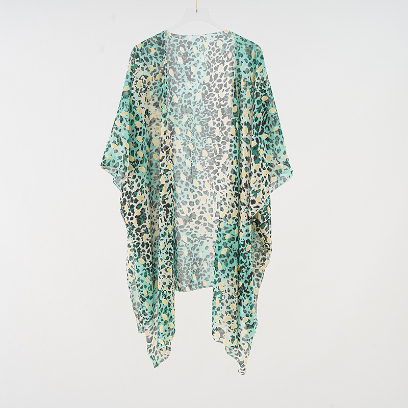 Summer Women Clothes Leopard Print Batwing Shirt Mid Length Cardigan Blouse