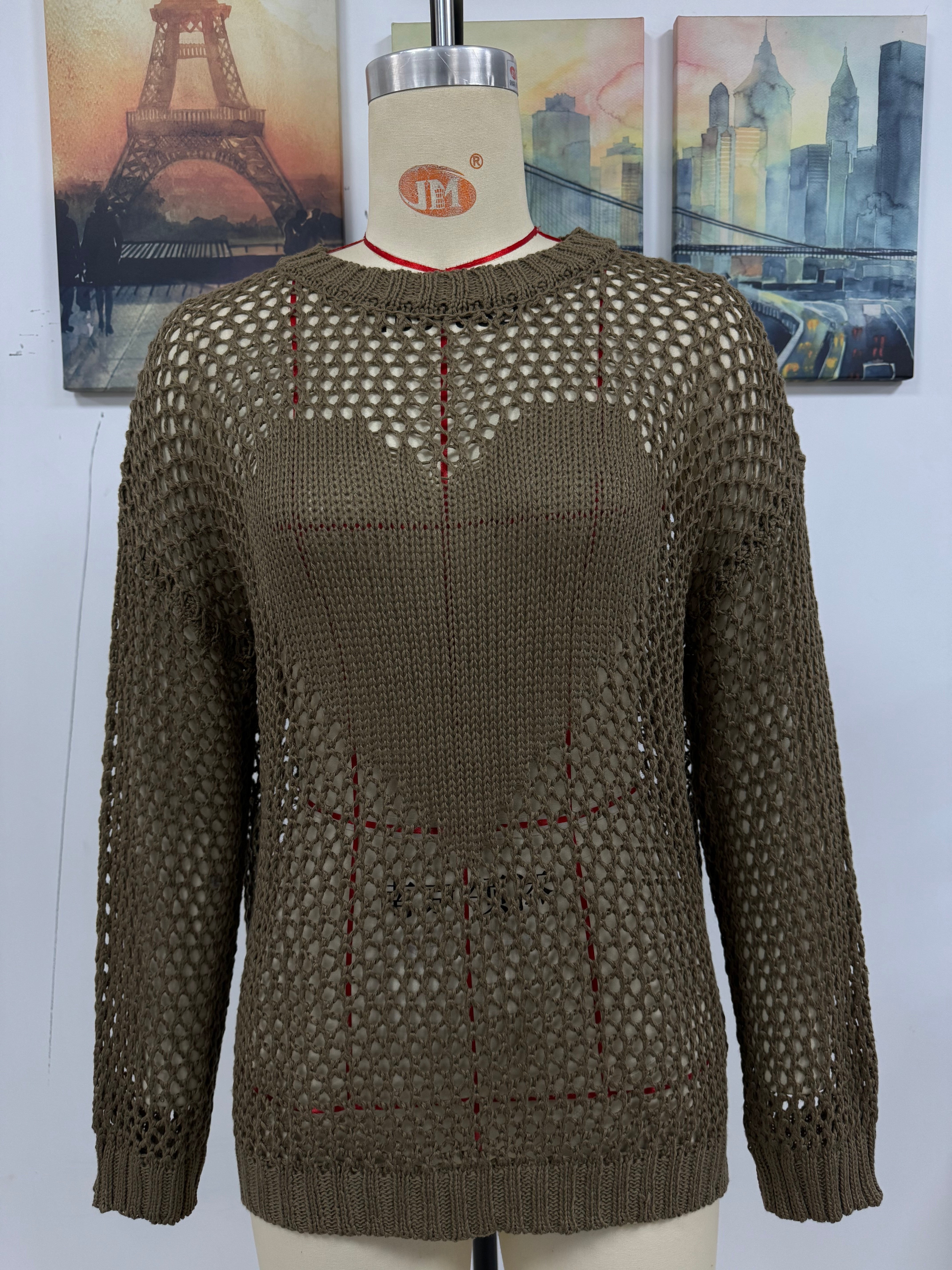 Summer Women Knitwear Round Neck Love Beach Cover Up Vacation Solid Color Women Knitwear