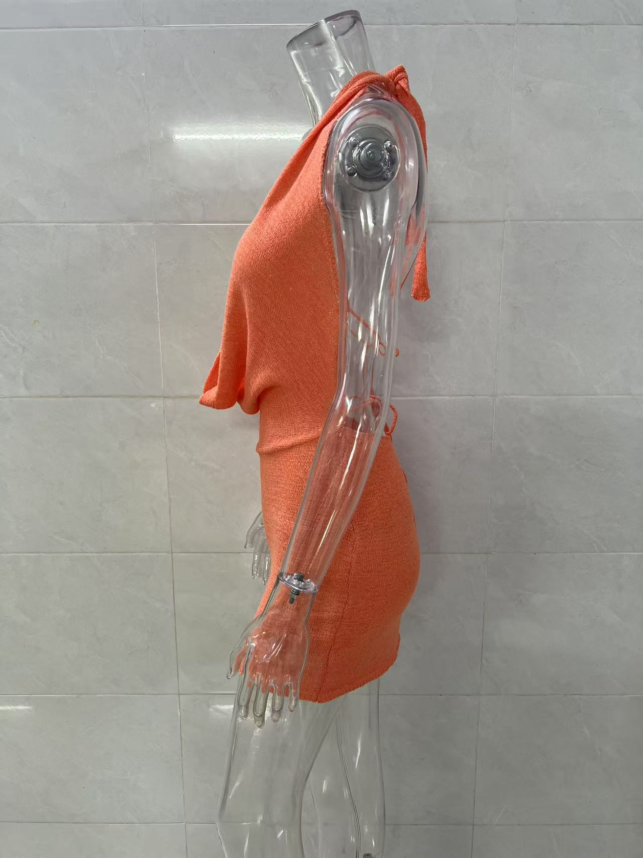 Summer Women Sexy Backless Halter Lace up Knitted Dress Hip for Women