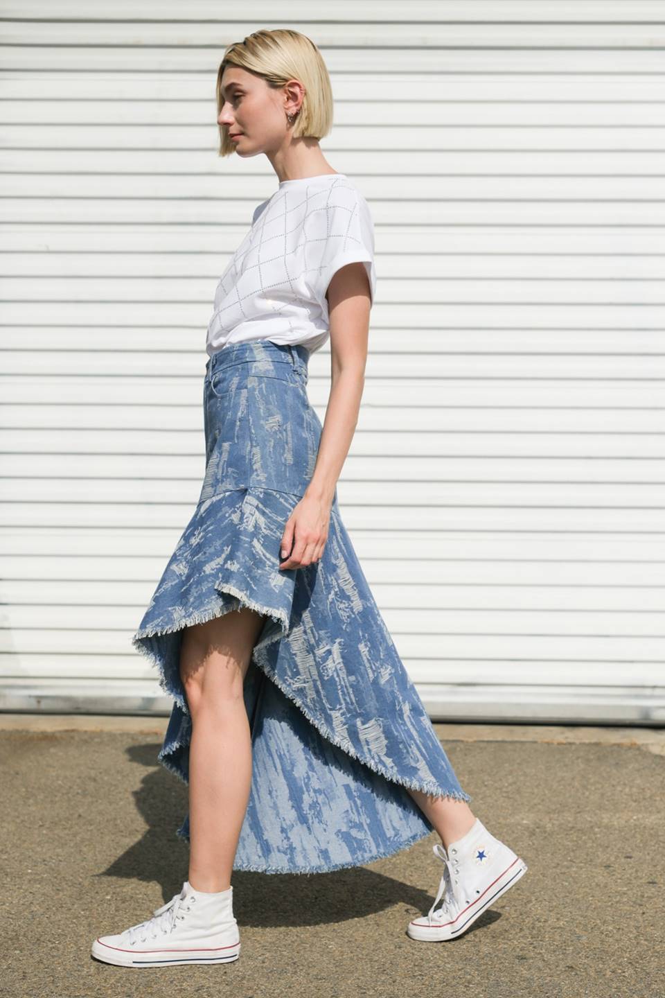 A knit top featuring round neckline, short cuffed sleeve and rhinestone embellished front