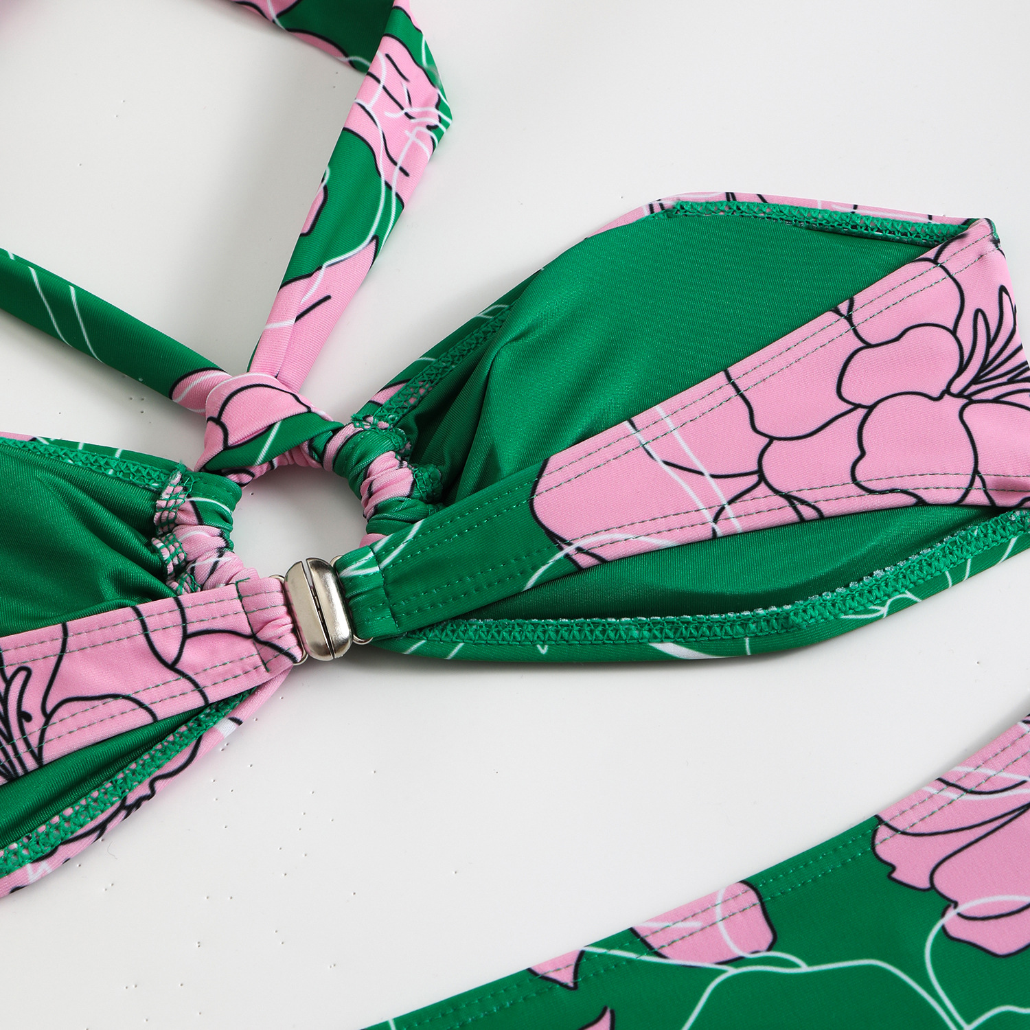Swimsuit Lace Printing Sexy Bikini Halter Split Swimsuit Women Bikini