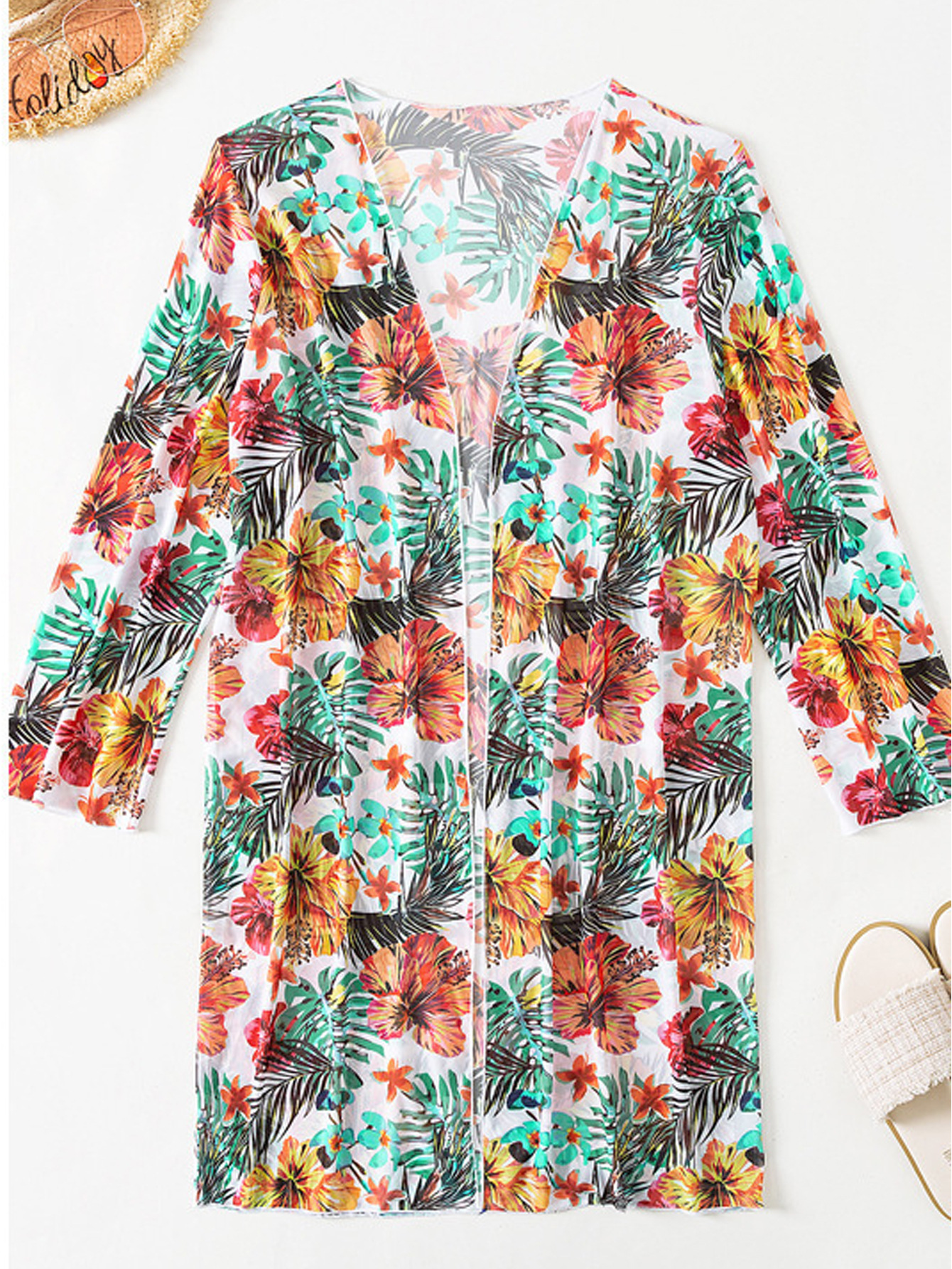 Swimsuit Split Three Piece Long Sleeve Conservative Bikini Printed Beach Swimsuit Women Bikini Cover