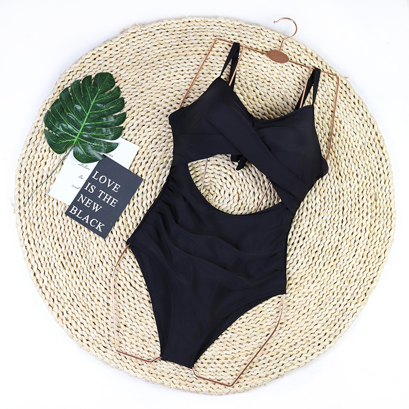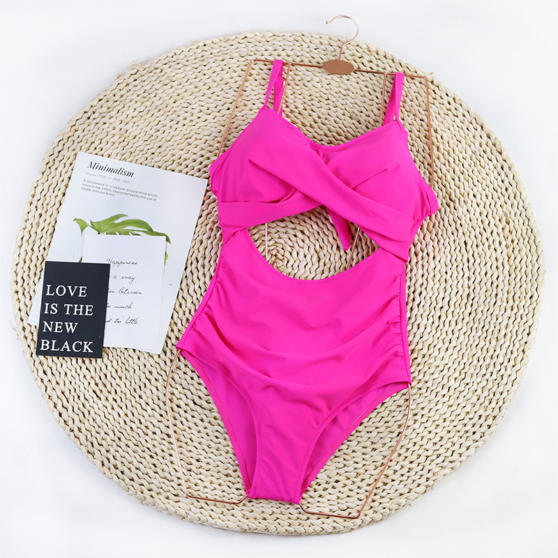 Swimsuit Women Halter Strap Beauty Back One Piece Swimsuit Pleated Belly Covering Thin Swimsuit