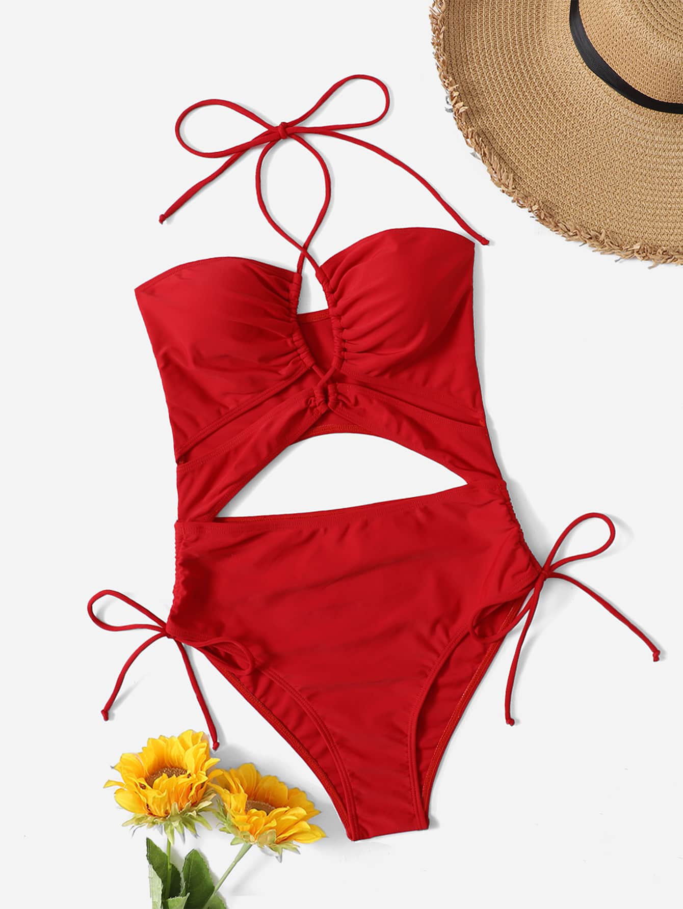 Swimsuit Women Siamese Triangle Solid Color Multi Color Lace up