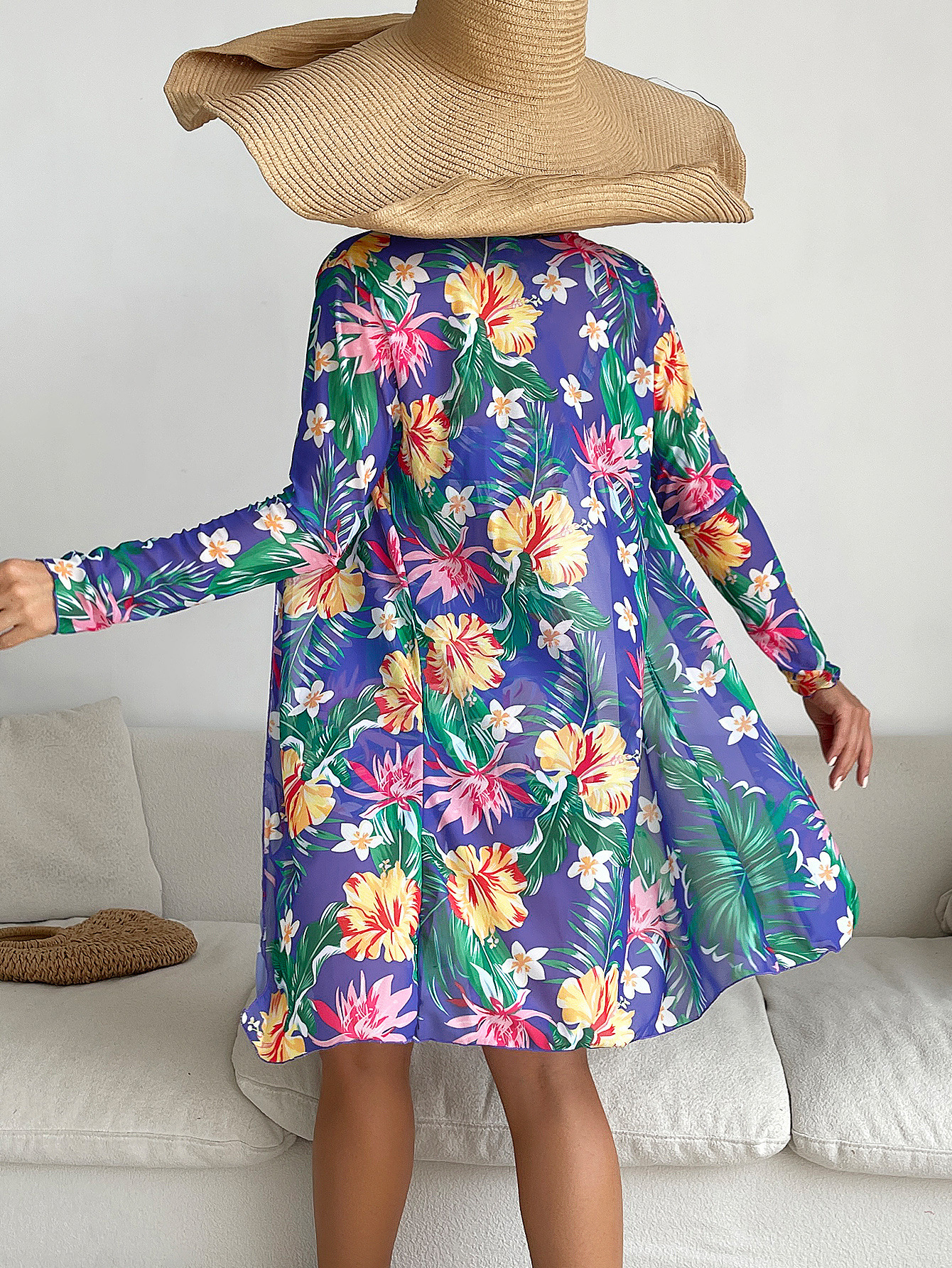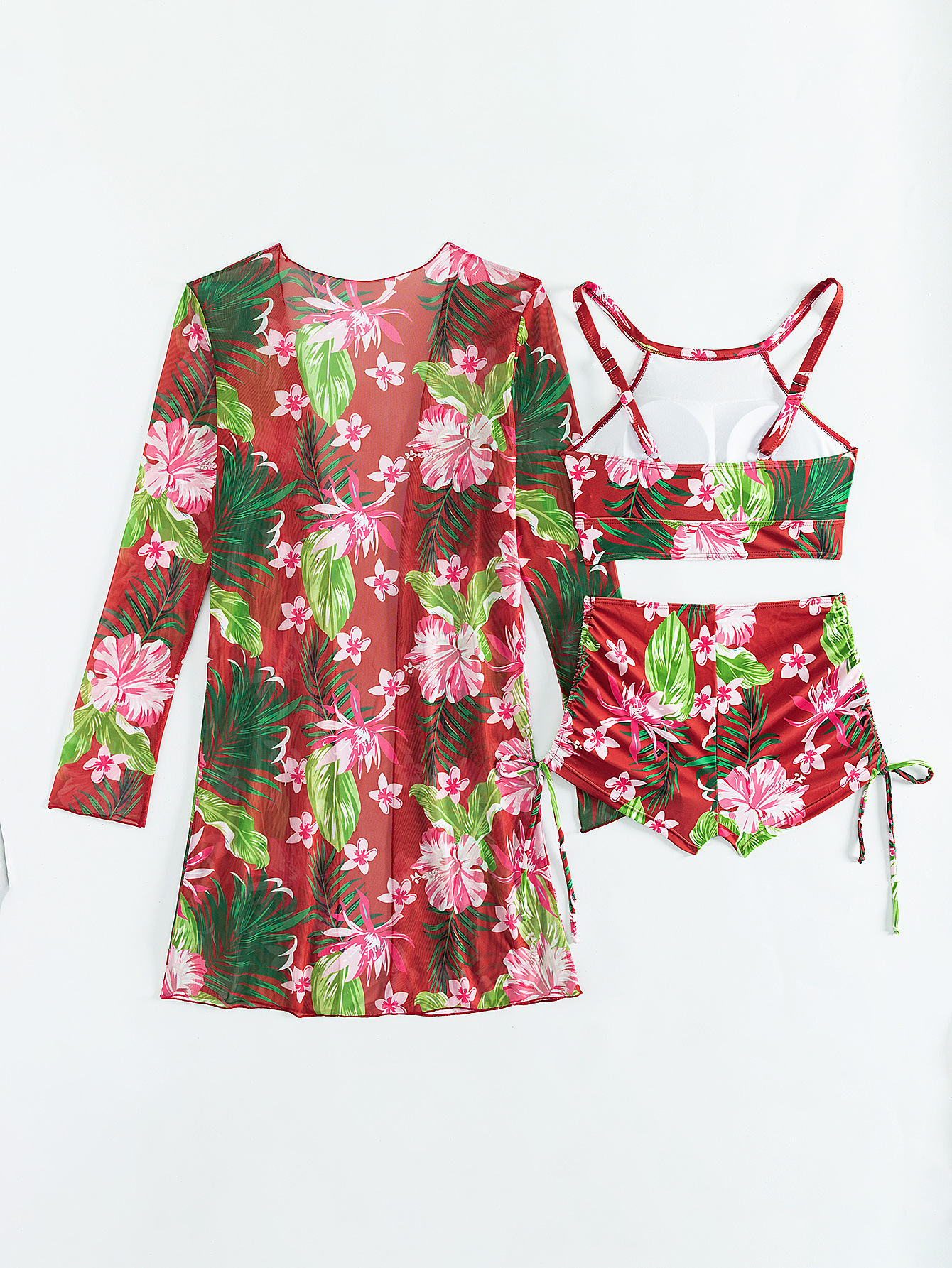 Swimsuit Women Split Three Piece Boxer Shorts Printing Mesh Red Conservative Swimsuit