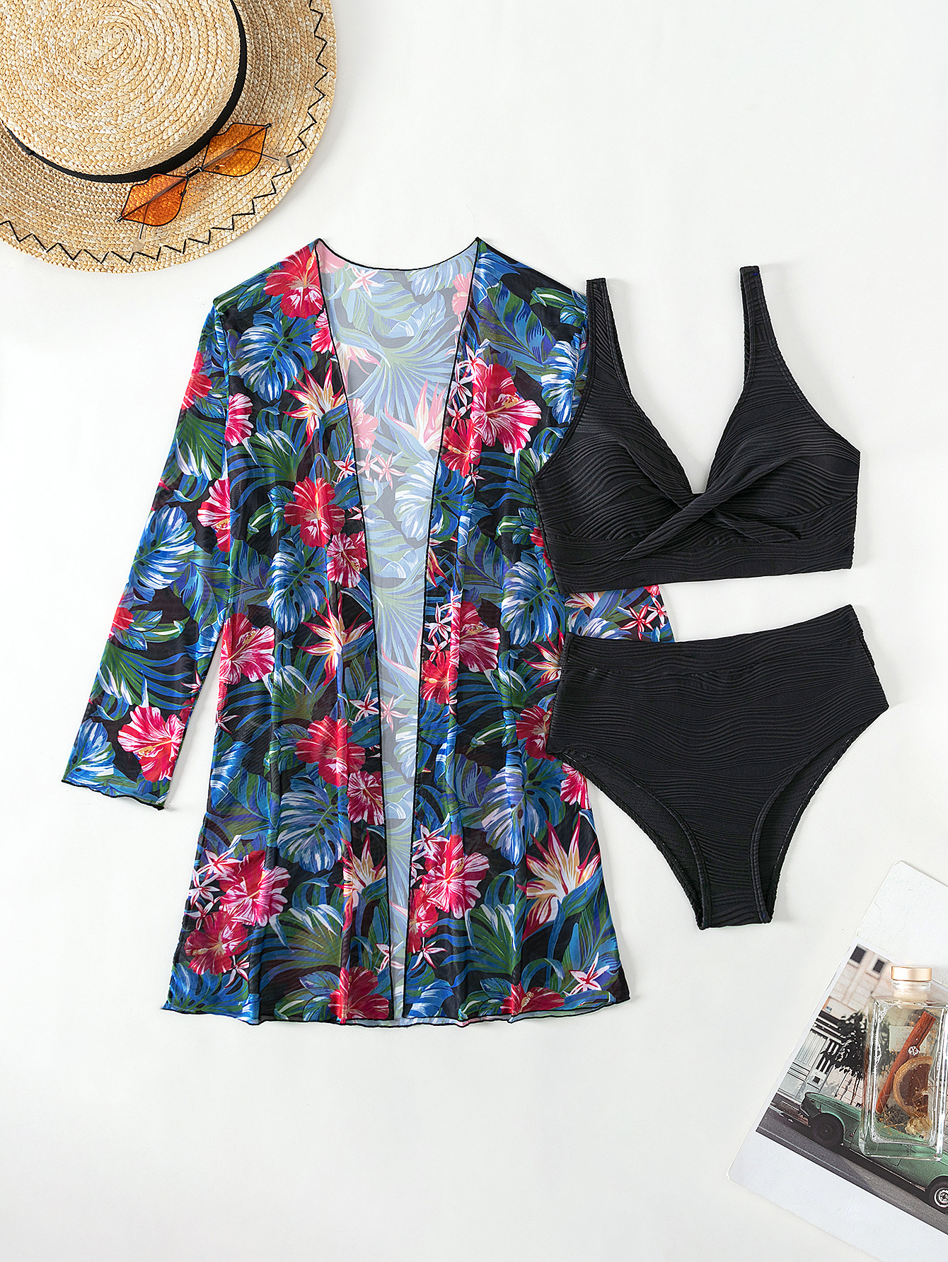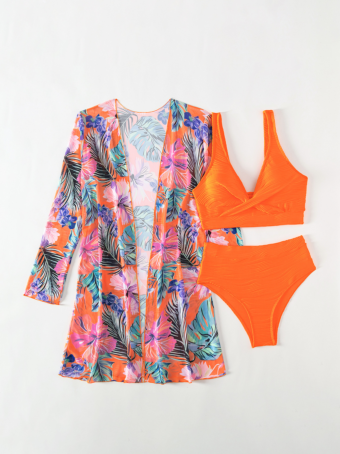 Swimsuit Women Split Three Piece Long Sleeve Internet Celebrity Bikini High Waist Solid Color Swimsuit