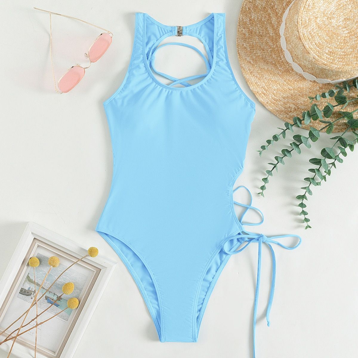 Swimwear Solid Color Bikini Sexy Hollow Out Cutout out Tied Bikini Women Adjustable One Piece Swimsuit