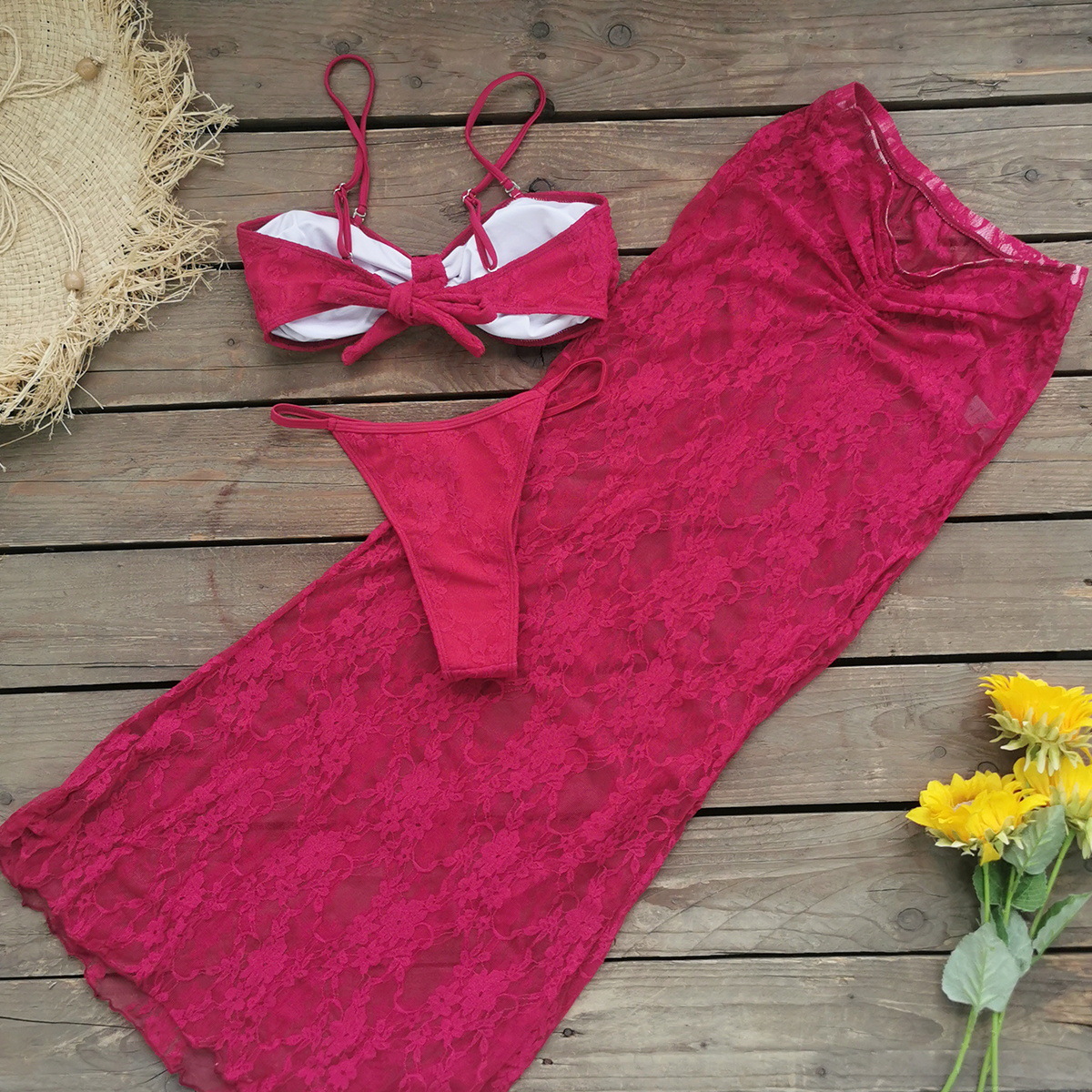 Three Point Banded Bikini Half Length Mesh Long Skirt Three Piece Sexy Backless Split Swimsuit for Women