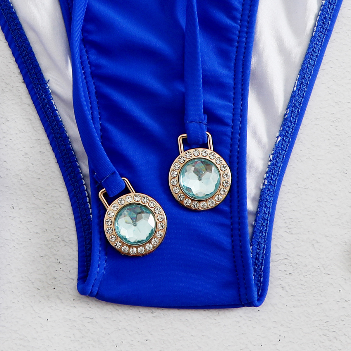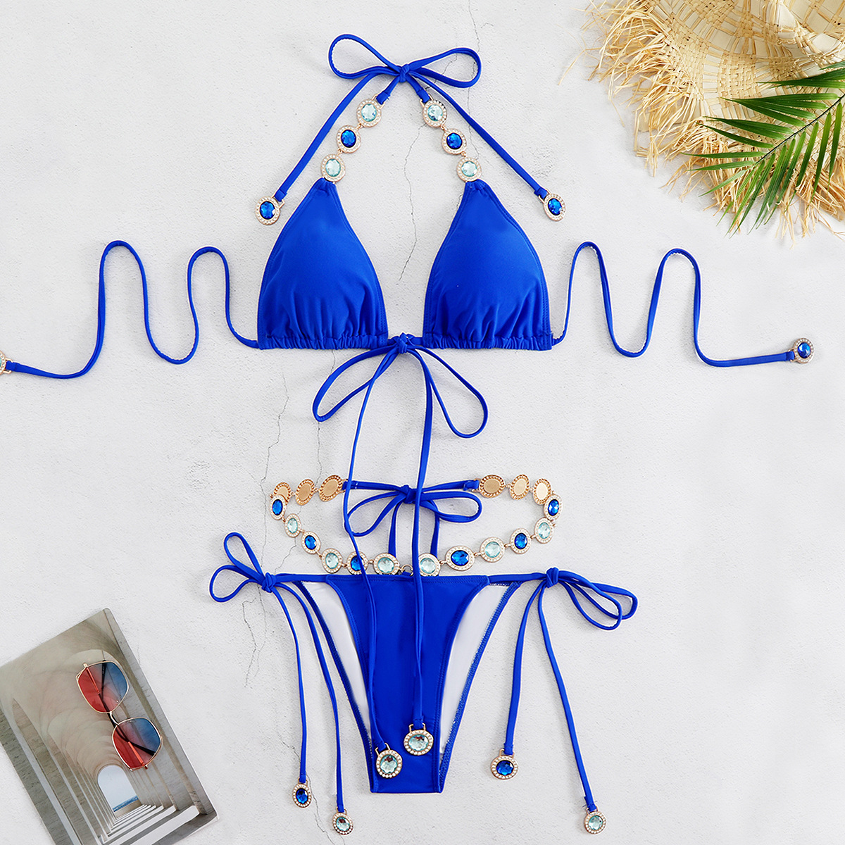 Three Point Solid Color Lace up Bikini with Diamond Sexy Split Swimsuit Women Bikini
