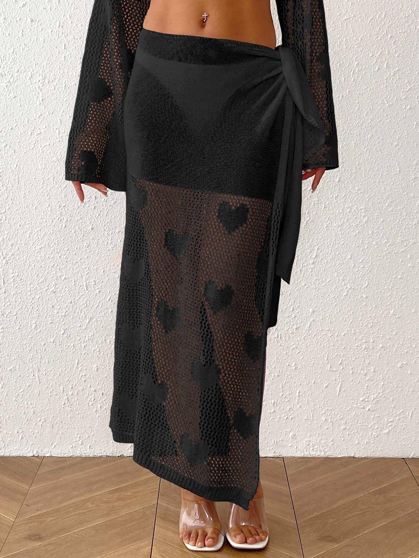 An asymmetric hem and a tied waist offer a flattering drape and adjustable coverage, while the sleeveless design promotes airflow in hot weather. This piece can function as a stylish beach cover-up or a standalone summer outfit, pairing easily with sandals and a straw bag. The style is described as Boho & Vacation, with a heart-patterned, solid design that suits summer occasions.