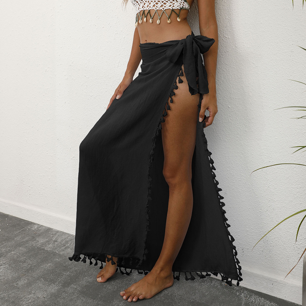 Women Clothing Lace Up Beach Skirt Tassel Stitching Irregular Asymmetric One Piece Sexy Skirt