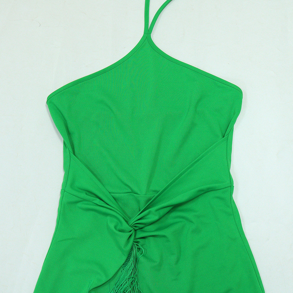 Women Clothing Sleeveless Lace up Skinny Sheath Tassel Maxi Dress Asymmetric Summer