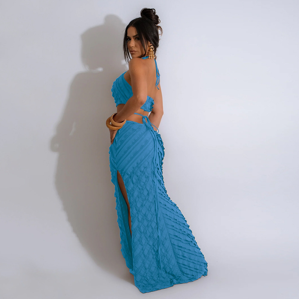 Women Clothing Small Louver Sexy Halter Lace Up Slim Fit Hollow Out Cutout Dress