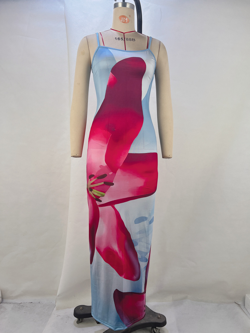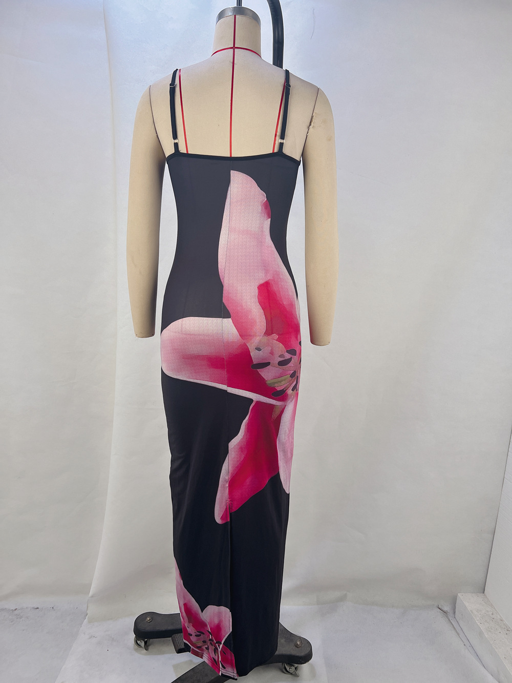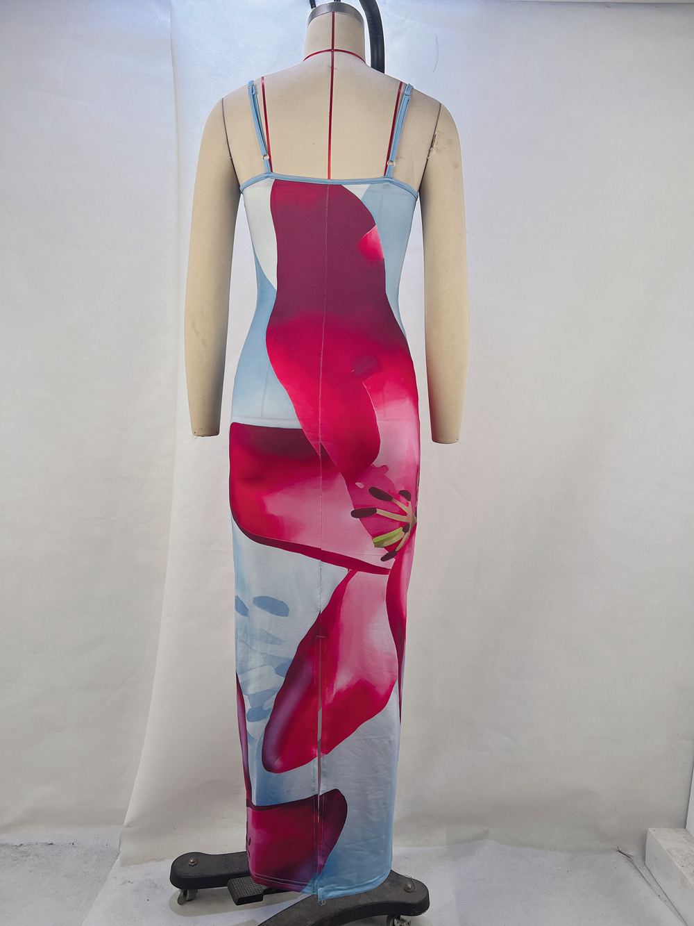 Women’s Summer Floral Spaghetti Strap Maxi Dress with Hip Split