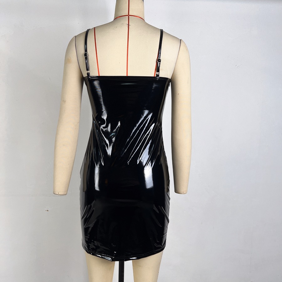 Women Clothing Summer Sexy Strapless Suspenders Tight Waist Sheath Dress Faux Leather Women