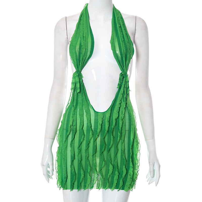 Women Clothing Summer Wave Pattern Sexy Bandeau Lace Up Short Dress
