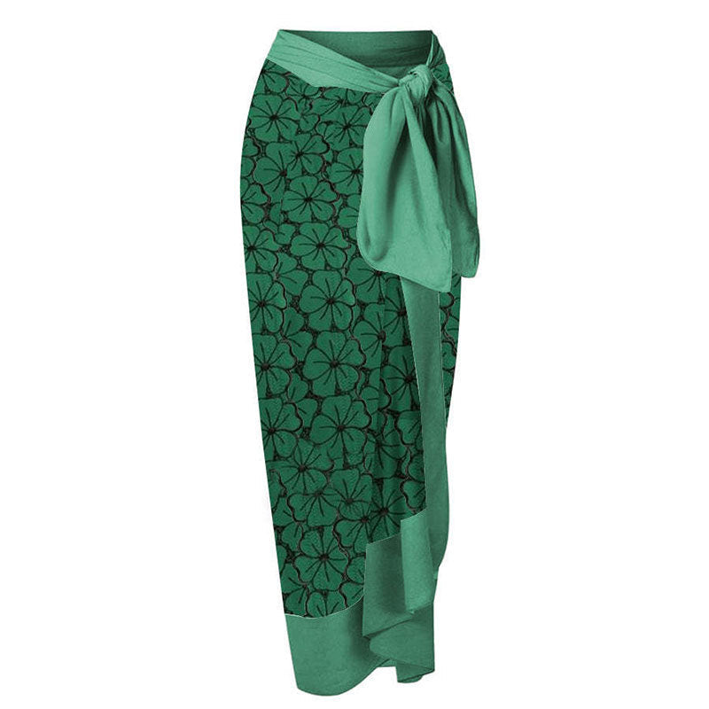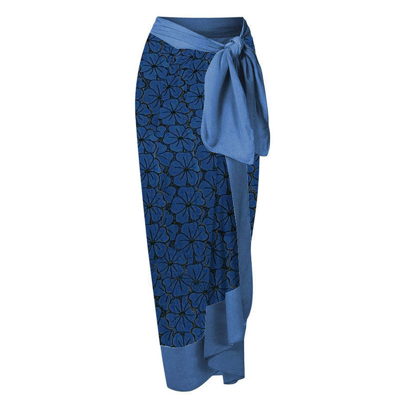 Women One Piece Swimming Bandage Women Tight Retro Printed Bikini Swimsuit Chiffon Skirt Set