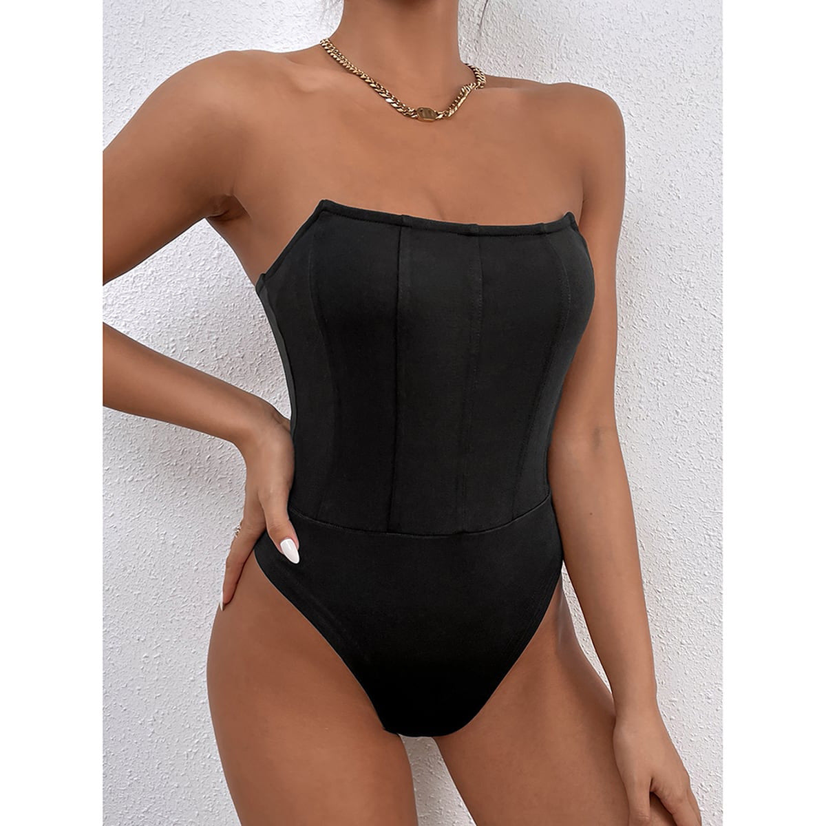 Women Patchwork Bodysuit Three-Dimensional Slim Fit Bodysuit Basic Strapless Tube Top Bodysuit Women