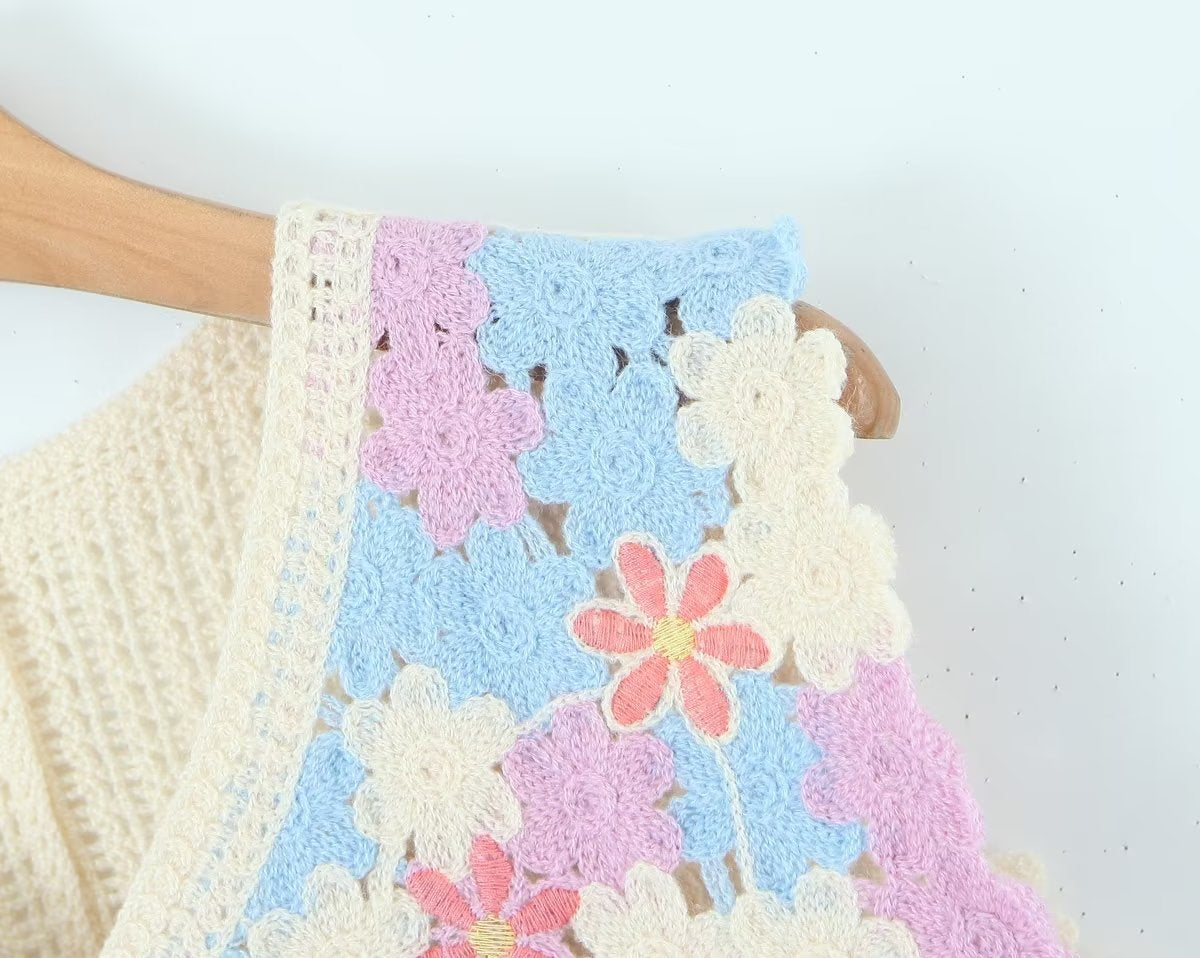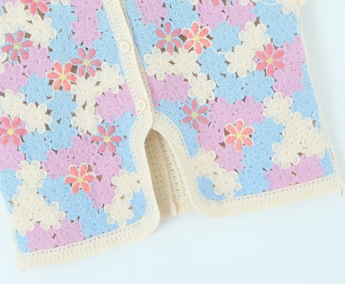 Women Retro Thailand Holiday Floral Vest Cardigan Top Casual All Matching Graceful