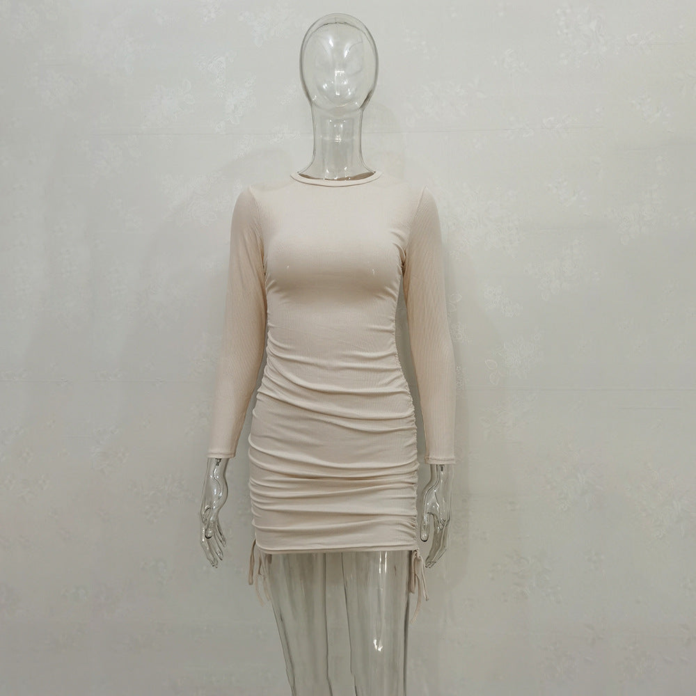 Women Sexy Sunken Stripe Long Sleeve Drawstring Adjustable Dress Women Clothing