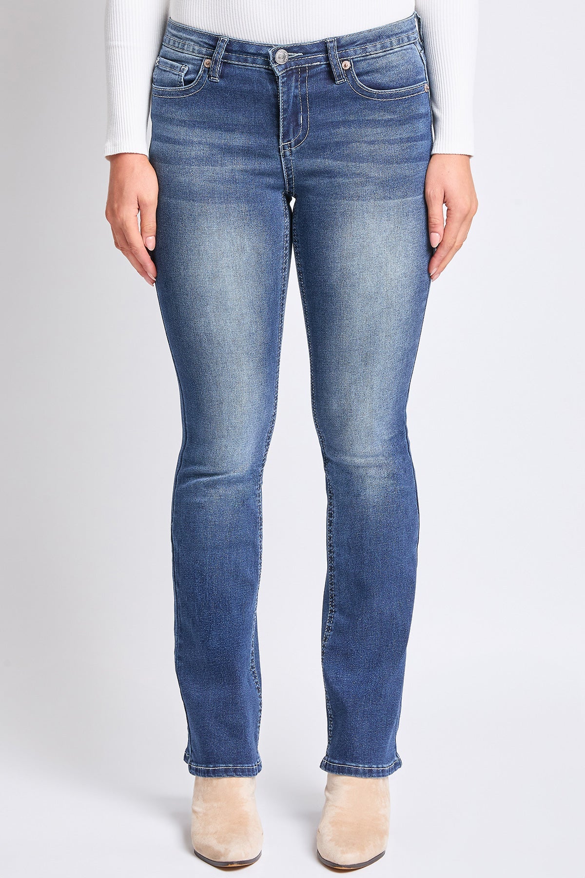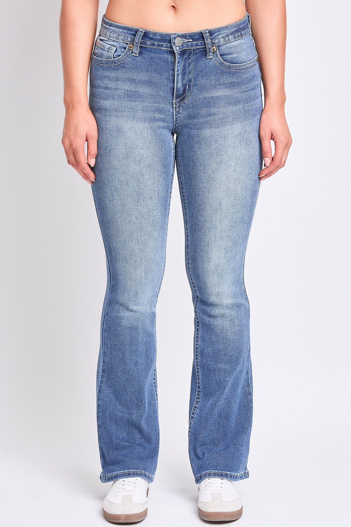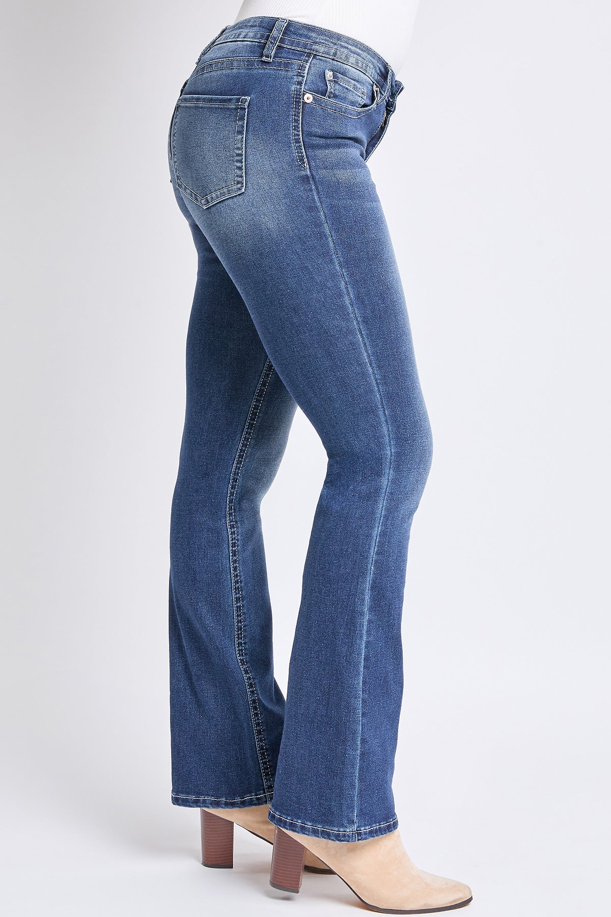 Women's Mid Rise Clean Hem Premium Stitch Bootcut Jeans by YMI Jeans, where classic design meets refined craftsmanship for the modern woman. These jeans are meticulously crafted to offer a perfect blend of timeless style and premium detailing.