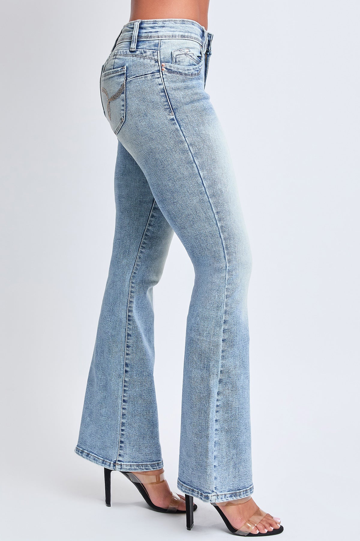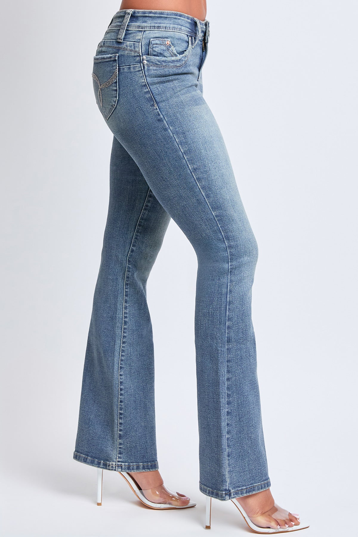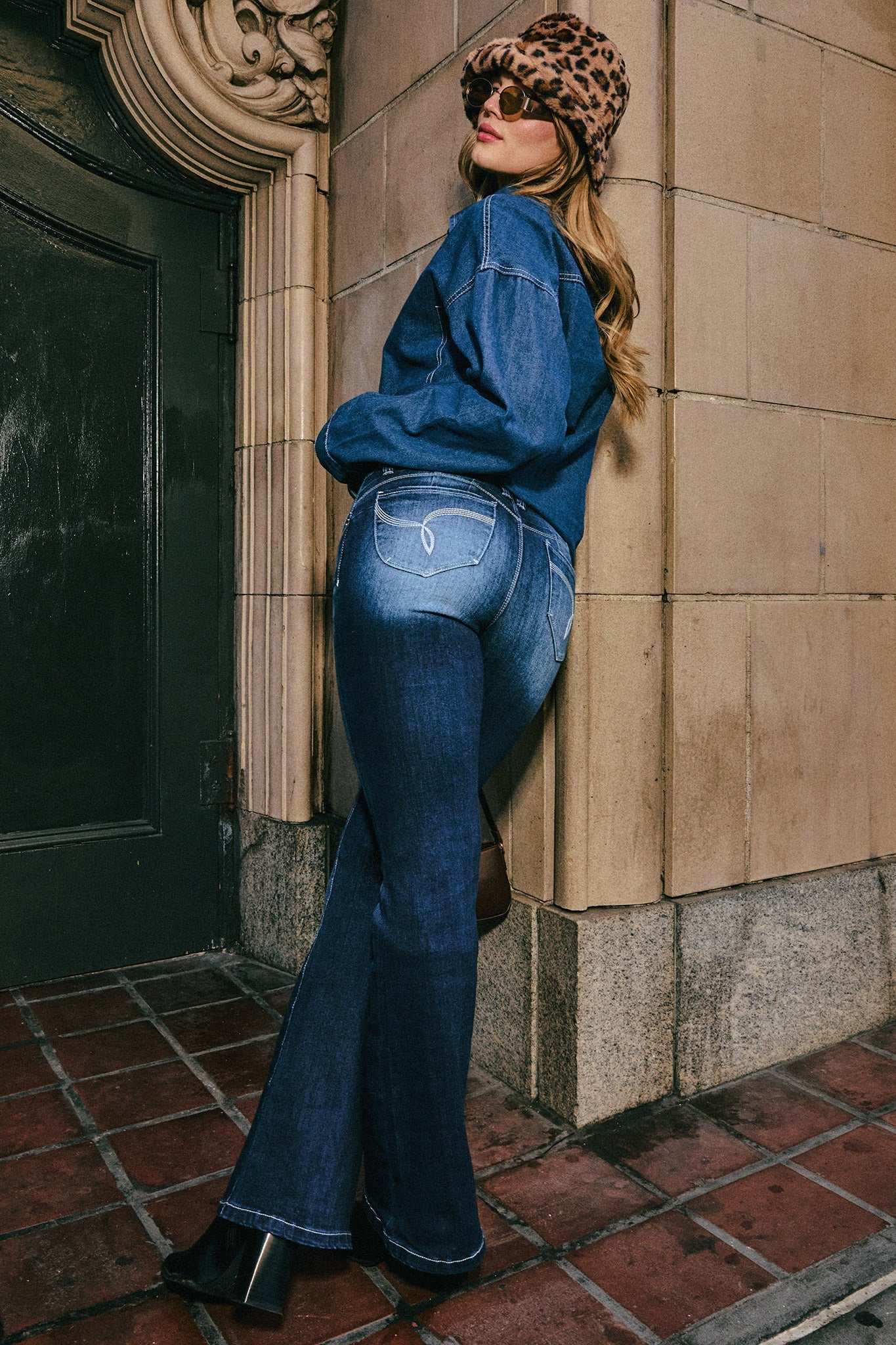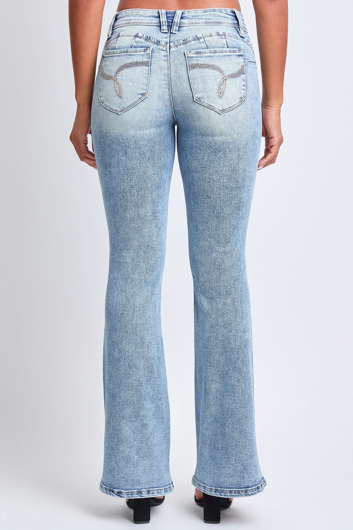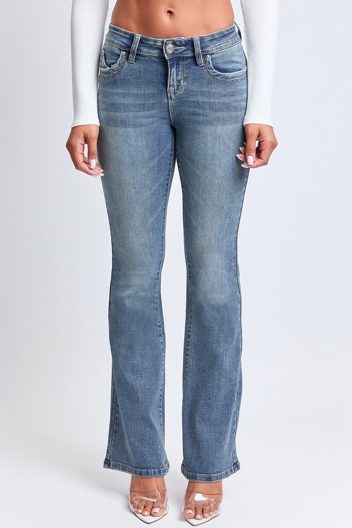 Women's WannaBettaButt Low Rise Embroidered Flare Jeans by YMI Jeans, where vintage-inspired style meets modern comfort for the confident woman. Crafted with meticulous attention to detail, these jeans offer a chic and flattering look that effortlessly combines retro charm with contemporary design.