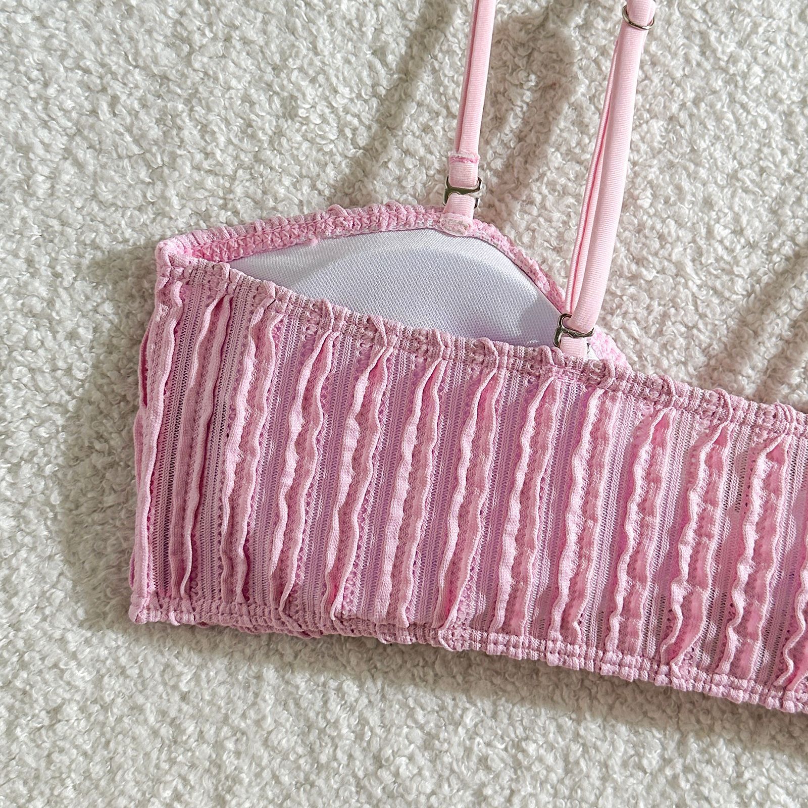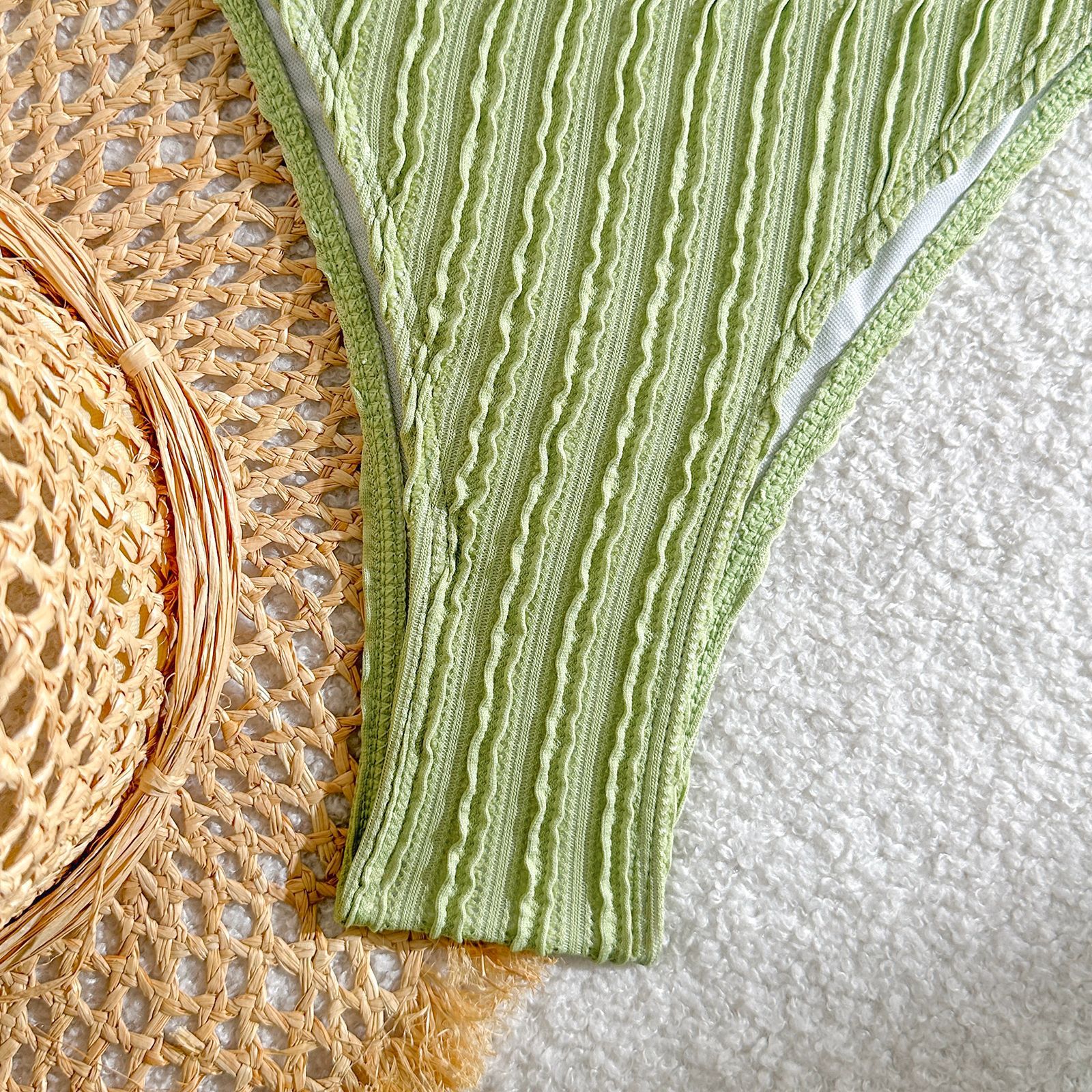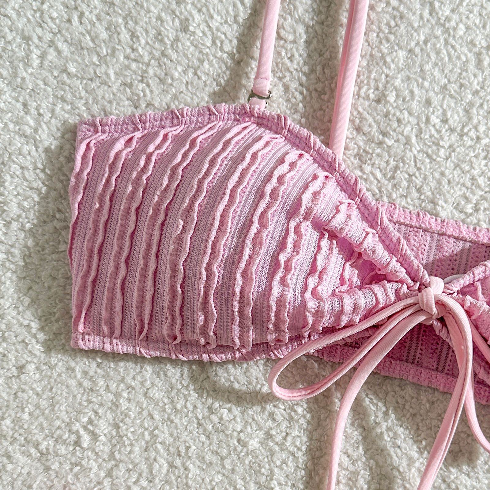 Solid Color Special Fabric Lace Up Split Swimsuit Swimwear Bikini Bikini