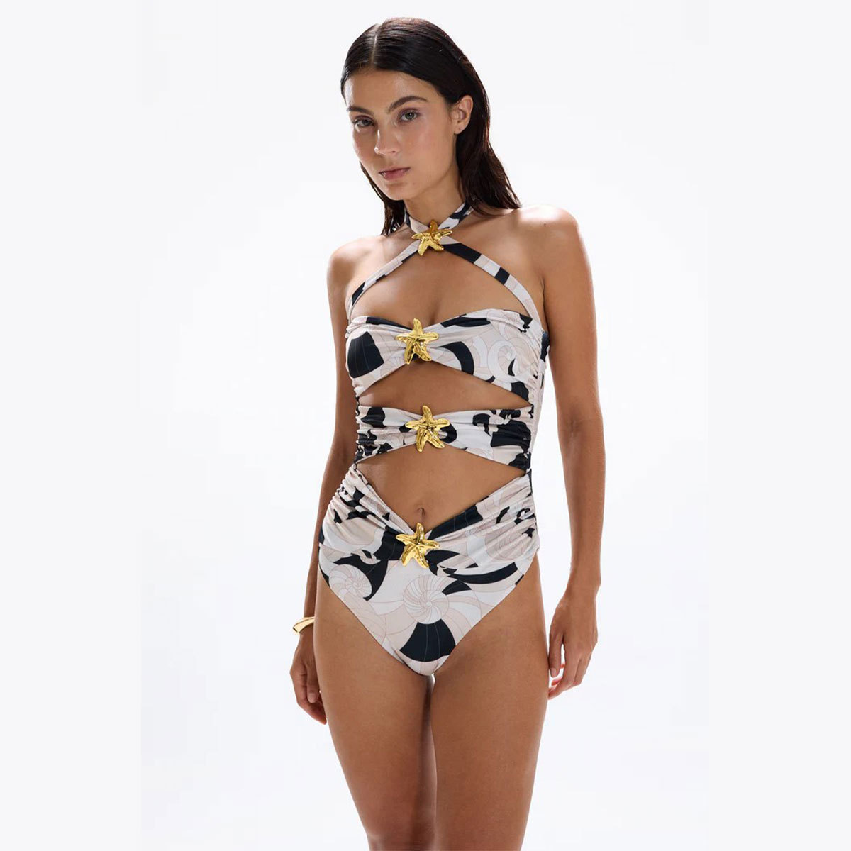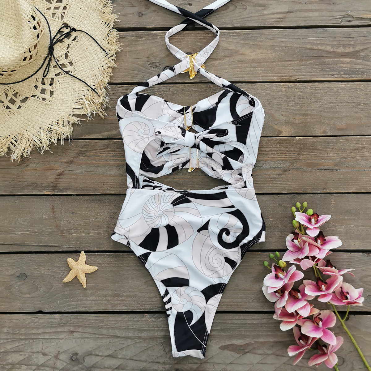 Sexy Cutout Lace up One Piece Swimsuit Women Swimwear Skirt Two Piece Sets