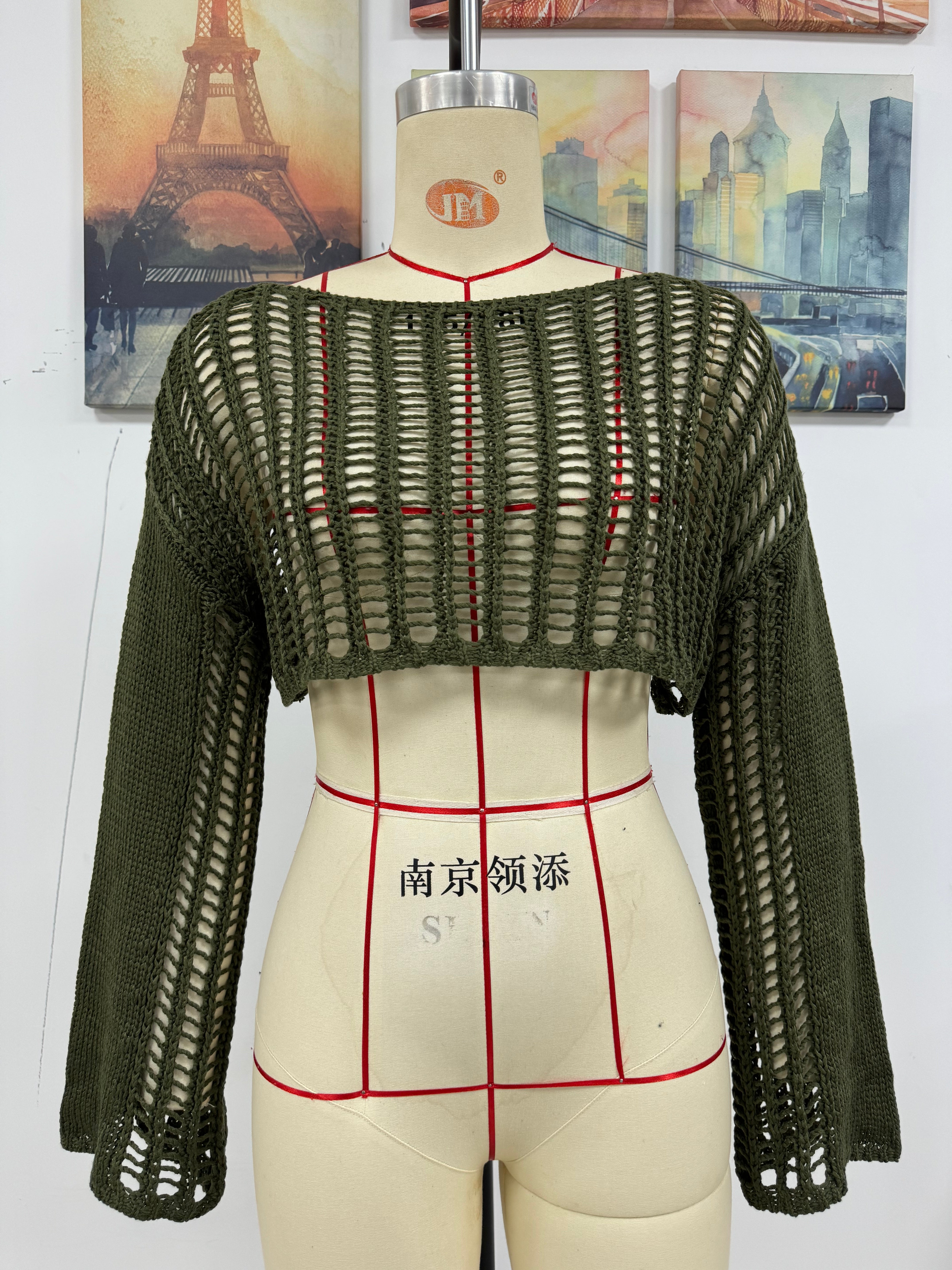Spring Summer Summer Women Bell Sleeve Loose round Neck Hollow Out Cutout out Women Knitwear