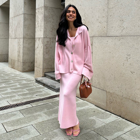 Knitted Long Sleeve Cardigan Camisole Skirt Set Women Autumn Winter Sweater Three Piece Set