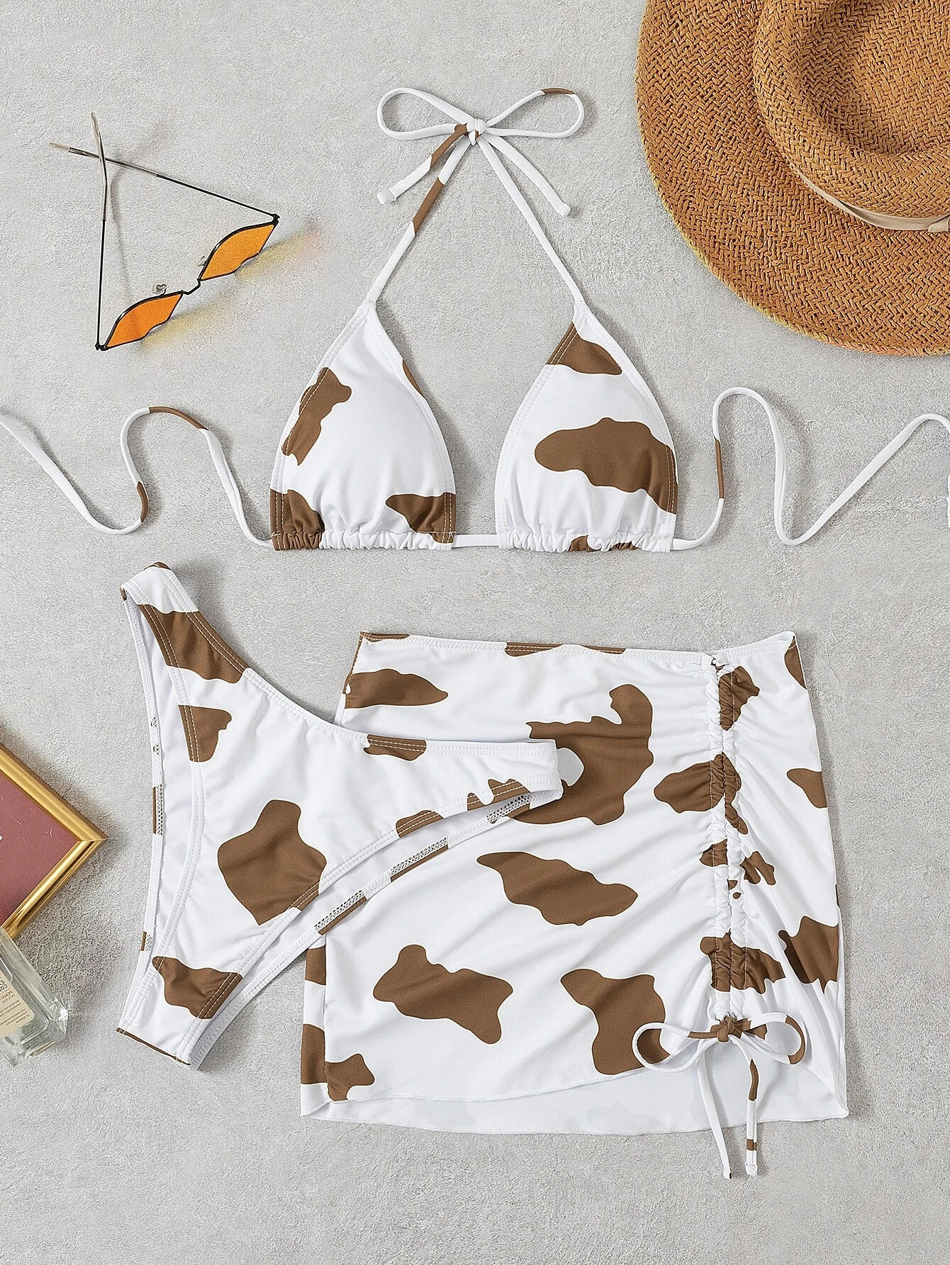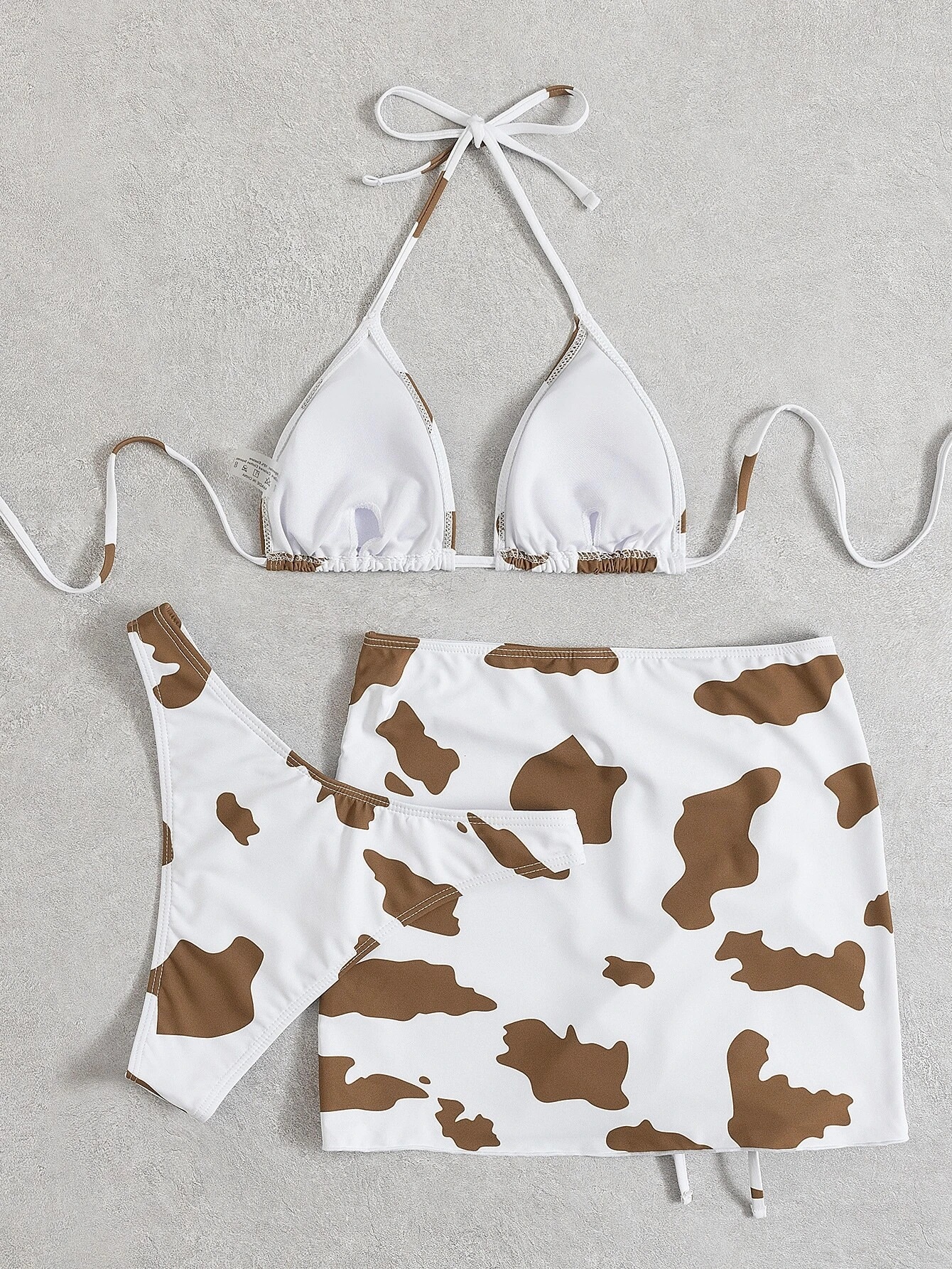 Women Swimsuit Women Split Three Piece Skirt Striped Bikini
