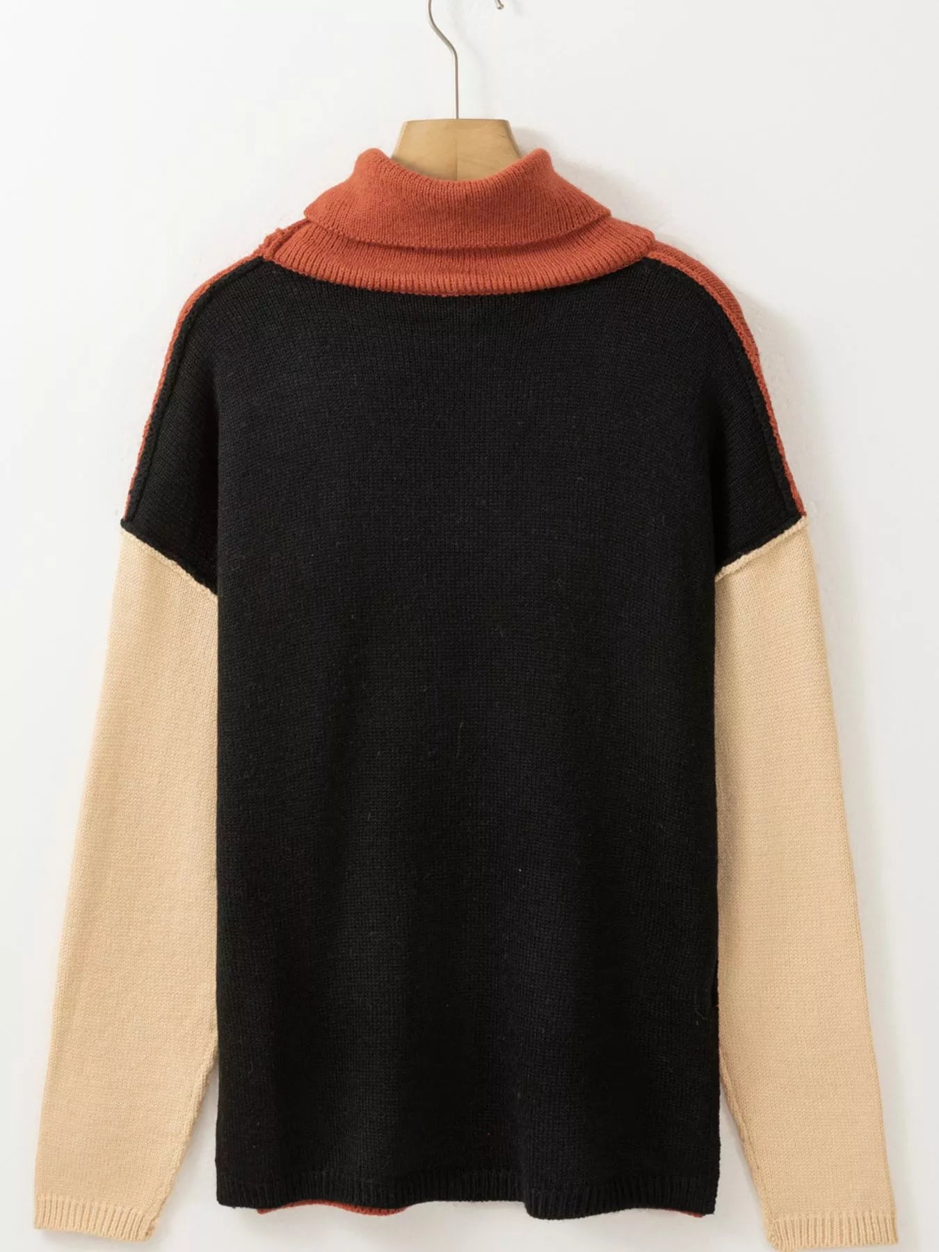 Color Block Turtleneck Drop Shoulder Knit Sweater Women