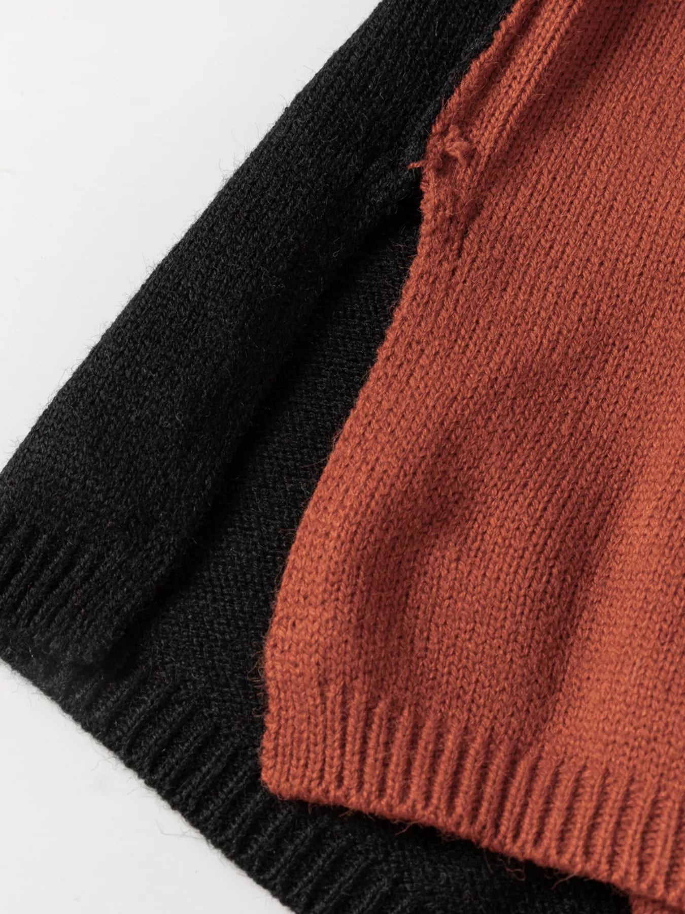 Effortless chic meets cozy warmth in this color block knit sweater. The turtleneck and relaxed drop shoulder create a modern silhouette that's perfect for layered looks.