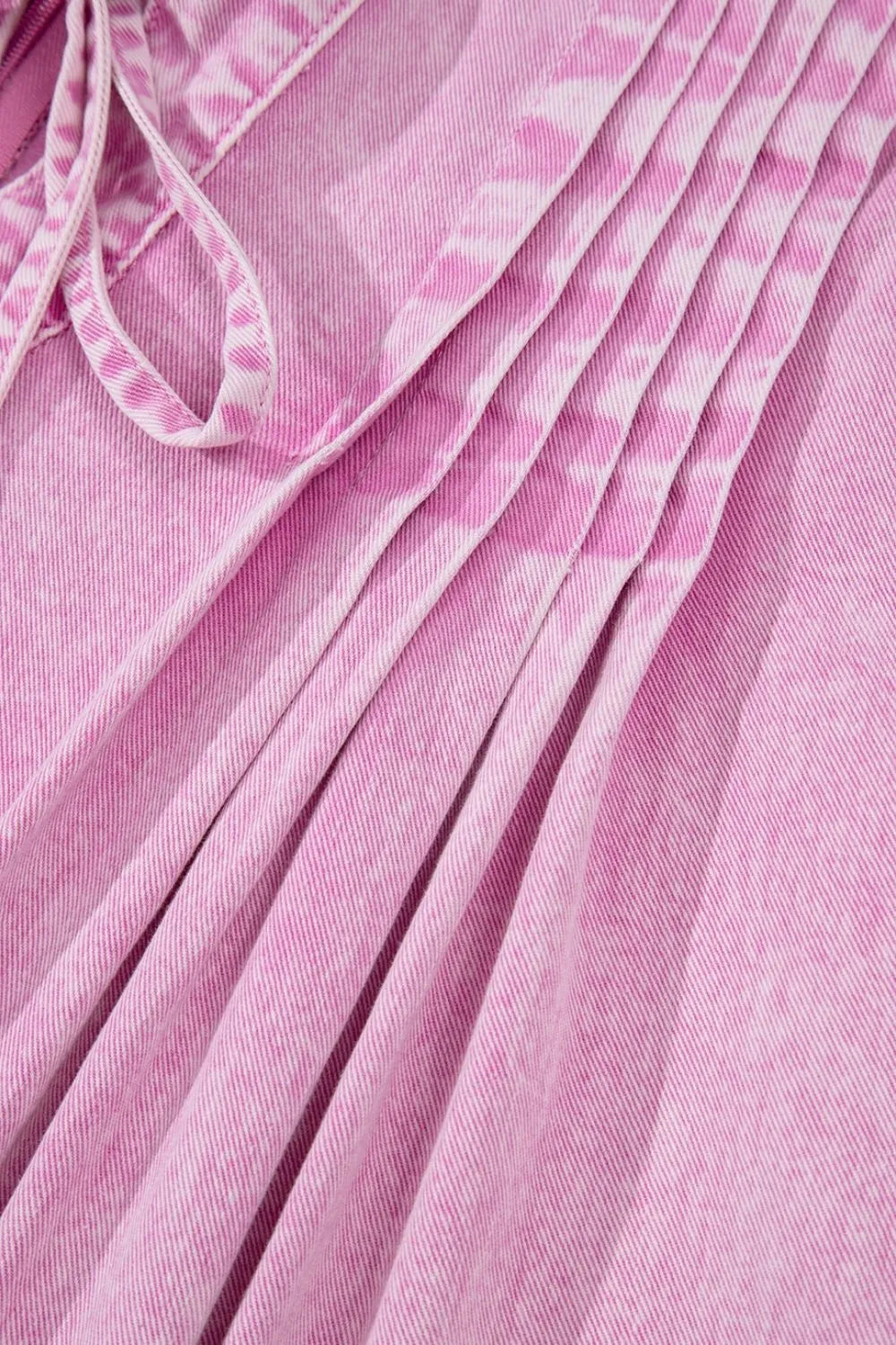 Mineral Wash Pleated Bust V Neck Sleeveless Denim Romper