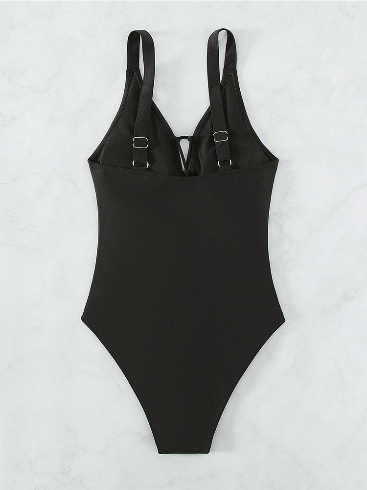 Tight Conservative One Piece Swimsuit Solid Color Sling Hollow Out Cutout Triangle Beach One Piece Bikini