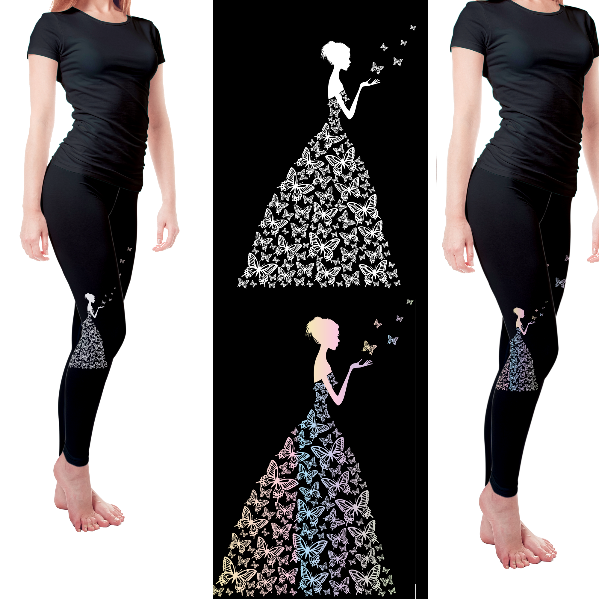 Butterfly, bumblebee and sunflowers leggings blue with pockets