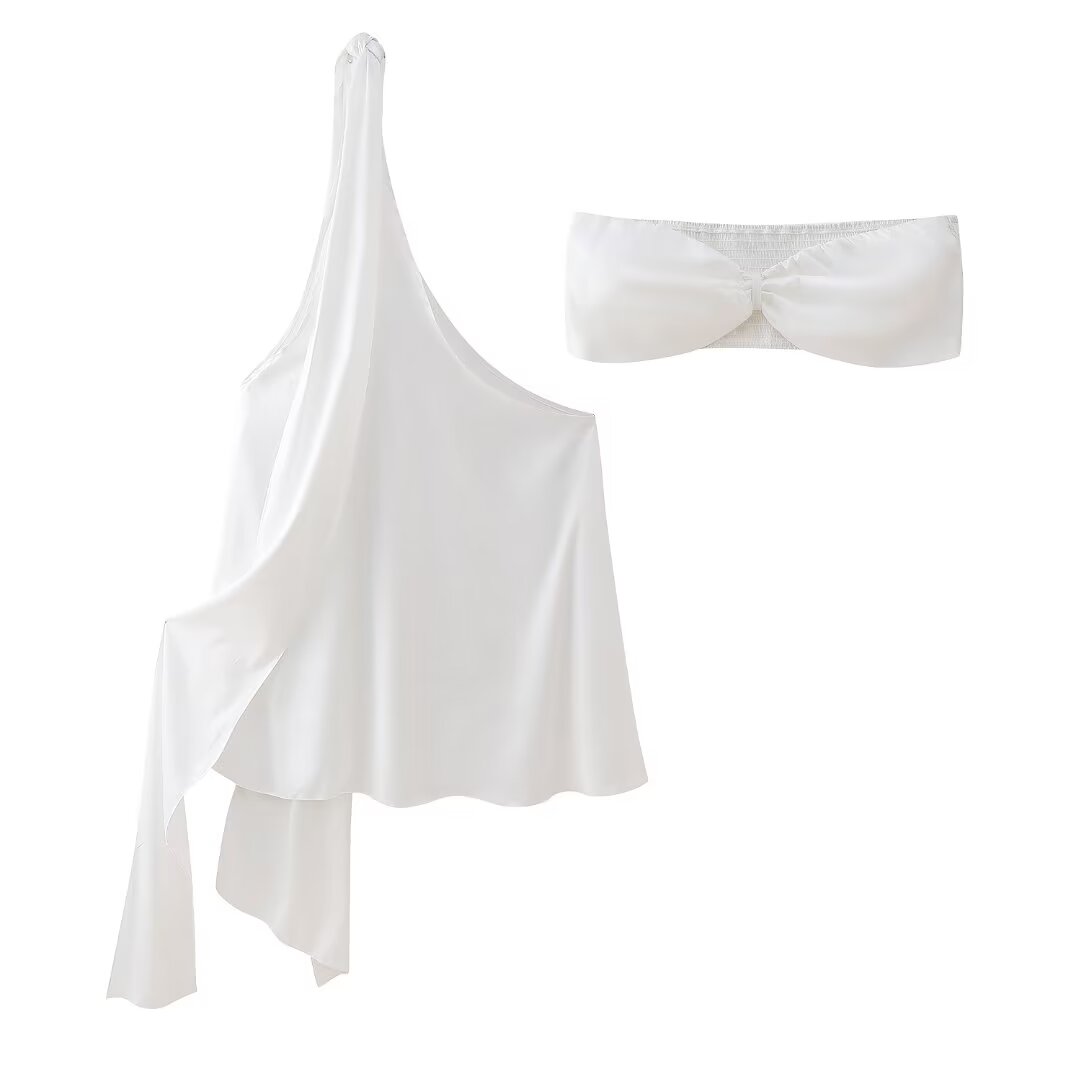 Spring Summer Women Clothing Dress Sexy Satin Slant Shoulder Mini Party Two Piece Dress