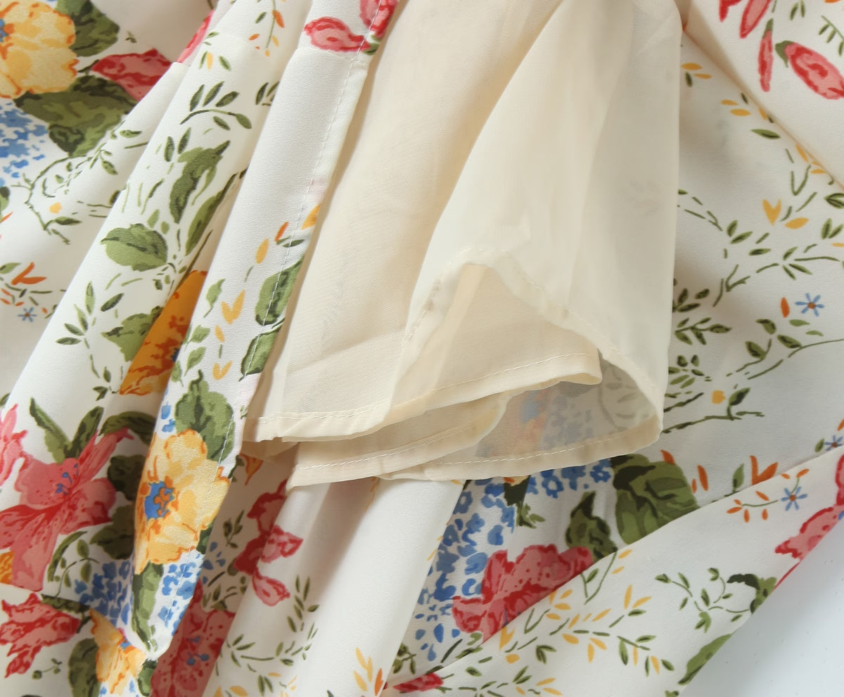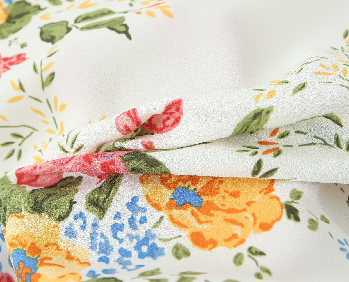 Experience a refined, seasonal silhouette with this sleeveless midi dress. The lightweight polyester fabric features a cream base adorned with a multicolor floral print, suitable for daily wear and relaxed vacation style.