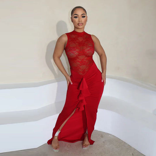 Sexy Women Clothing Sexy See through Lace Stitching Fishtail Dress