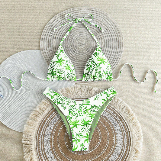 Split Swimsuit Sexy Women Fission Swimsuit Tropical Leaf Printed Swimsuit