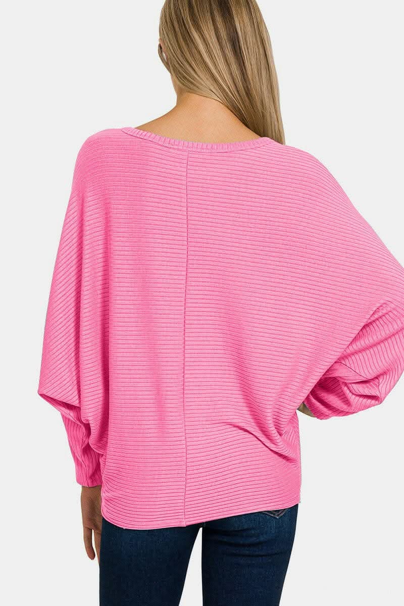 Zenana Ribbed Round Neck Long Sleeve Top - Love Salve