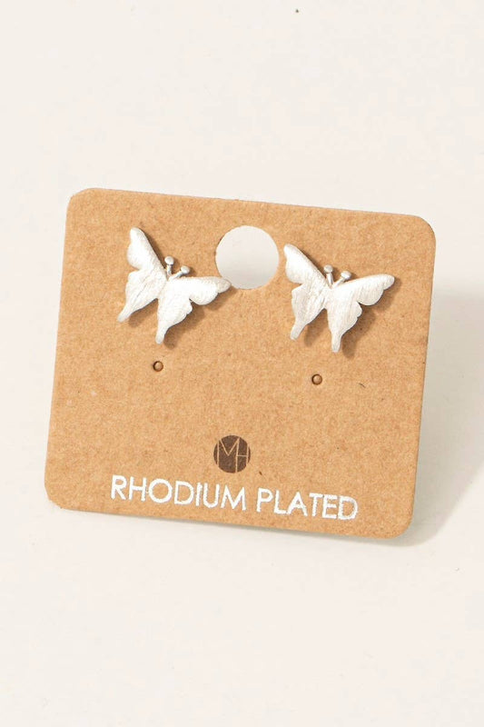Elegant Rhodium-Plated Butterfly Stud Earrings