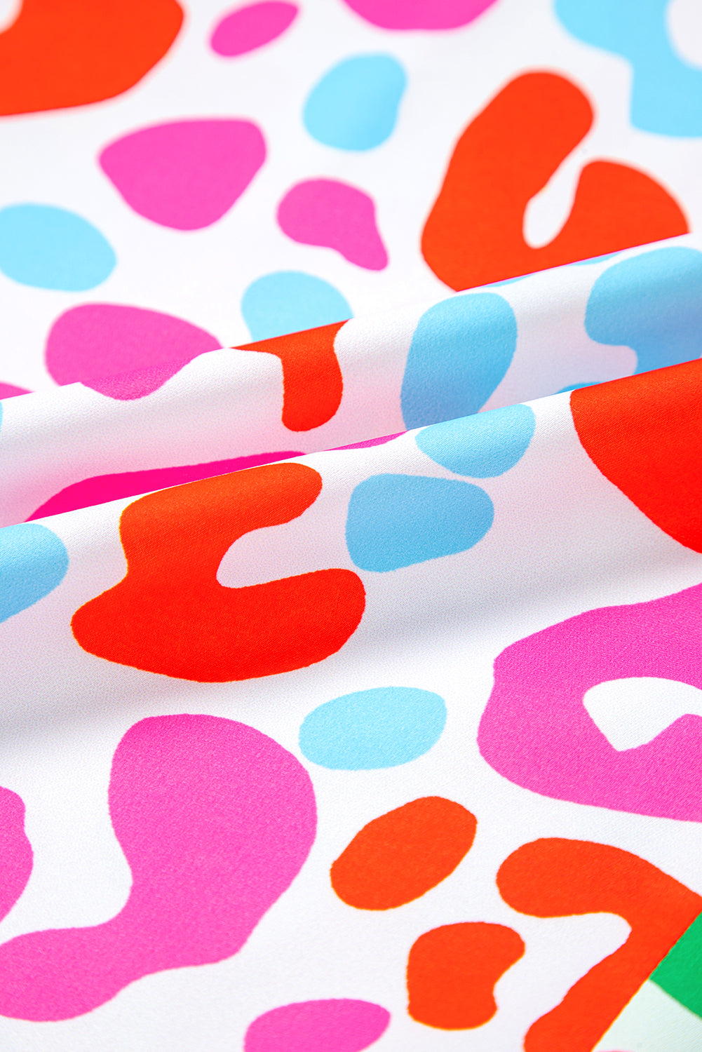 Green Leopard Print Patchwork V Neck Short Sleeve Blouse