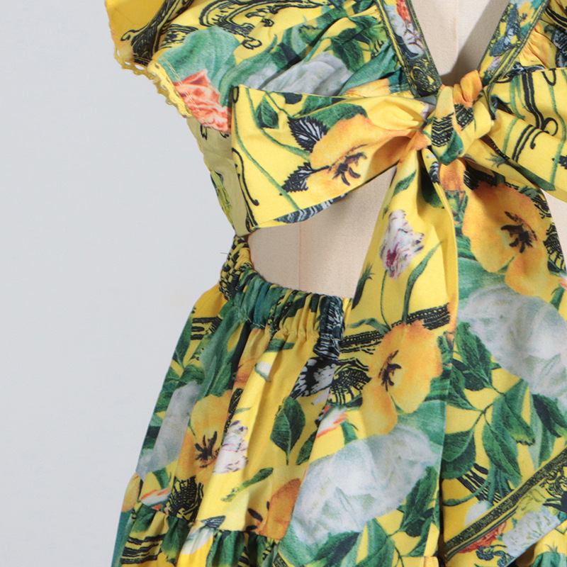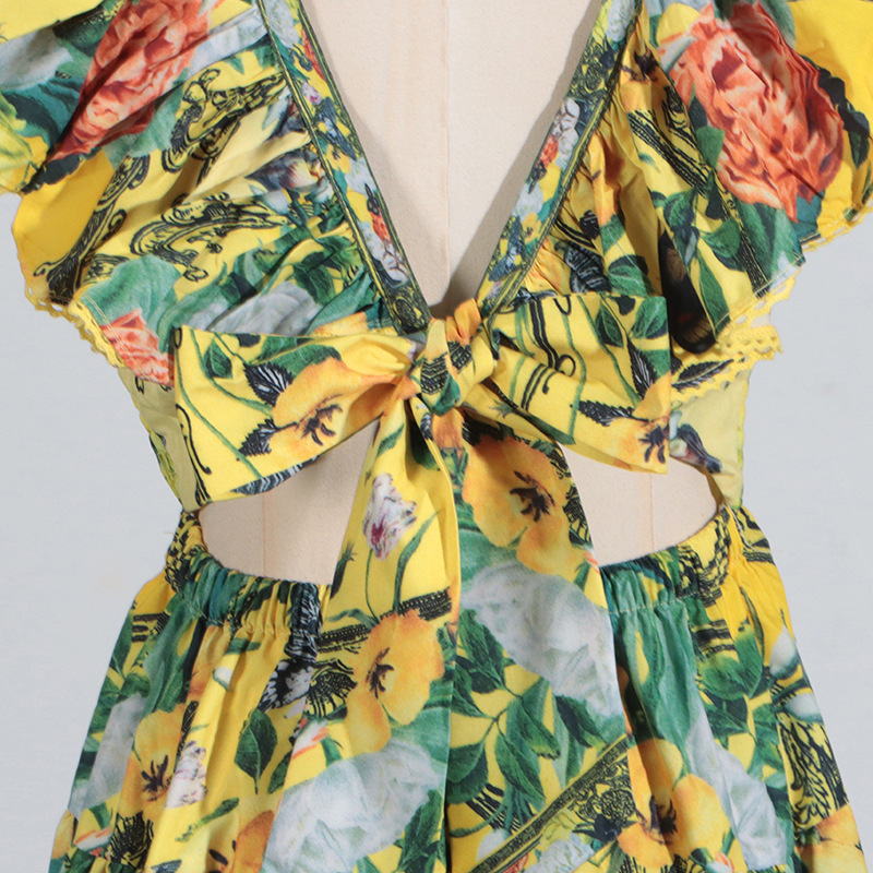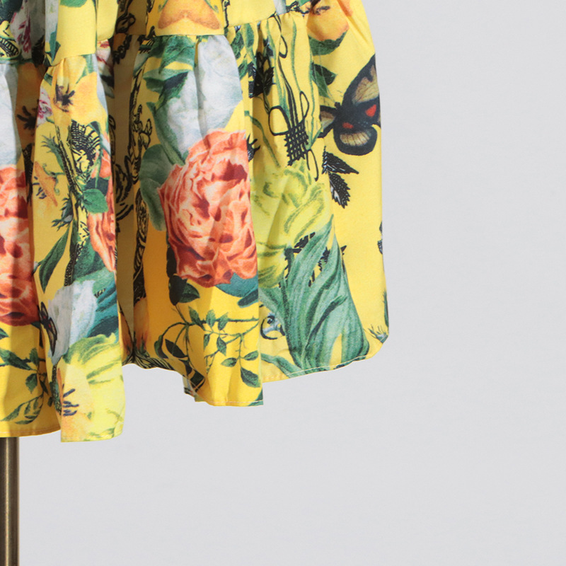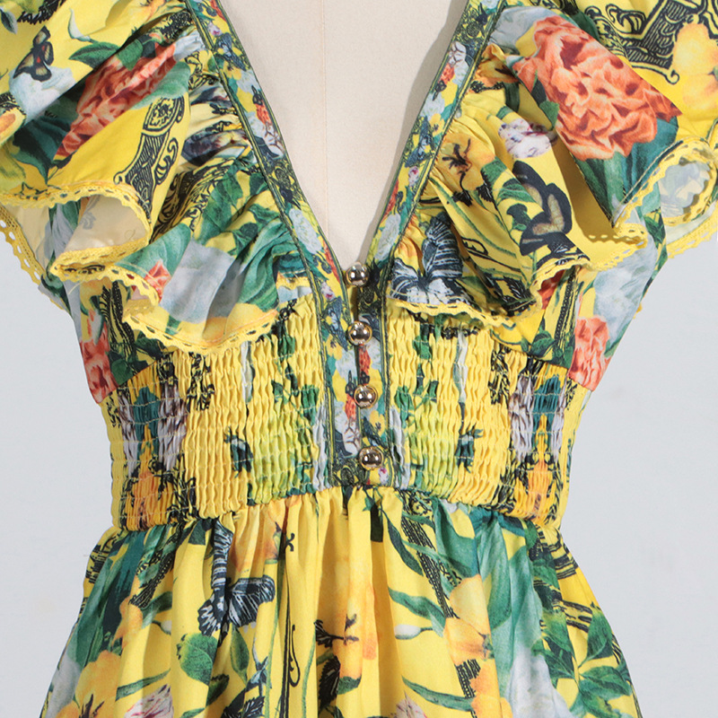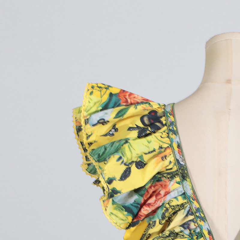 Brand Design Dress Flying Sleeves Printed Ruffled Aline Short Dress for Women