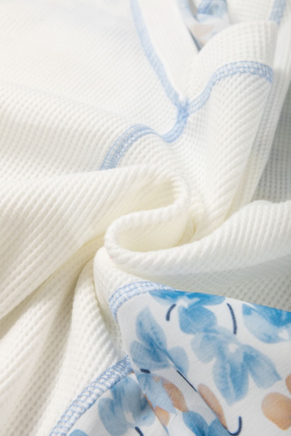 Elevate your wardrobe with the Chic White Floral Batwing Blouse, designed for the modern woman. This piece combines comfort and a distinctive look through artistic floral patchwork along the sleeves and panels, creating a subtle focal point.