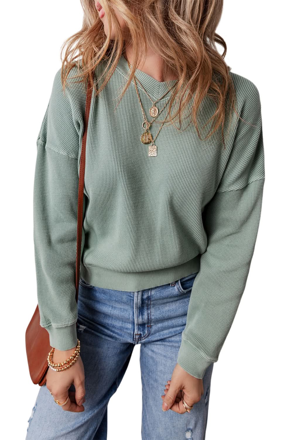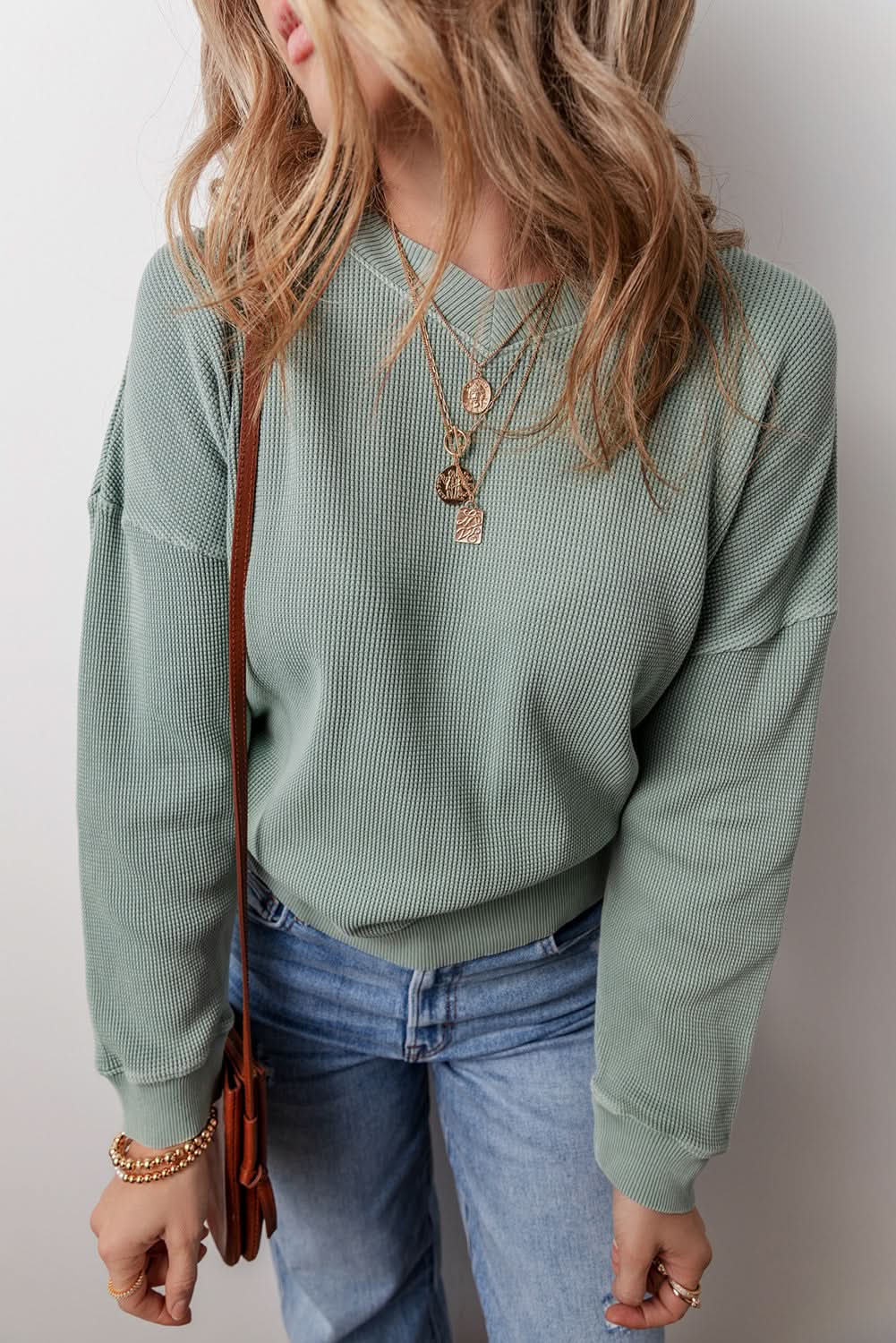 Clearly Aqua V-Neck Top - Cozy Knit - Love Salve