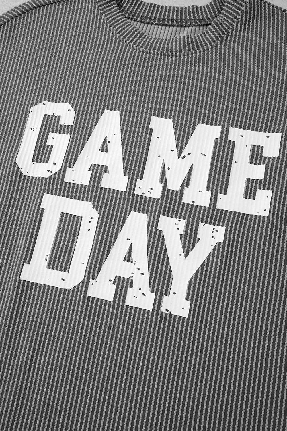 The bold graphic reads GAME DAY, adding a distinctive touch to casual looks. Designed with a relaxed shift silhouette, it drapes smoothly over the body and layers well under jackets or over tees. Ideal for daily wear, it pairs easily with denim, chinos, or joggers for versatile, stylish comfort.