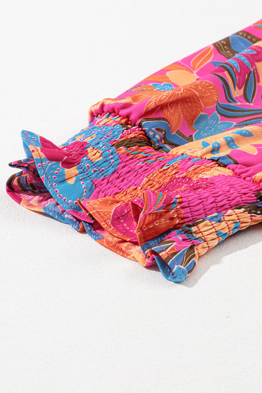 Rose plus floral blouse - frilly neck, puff sleeves - Love Salve