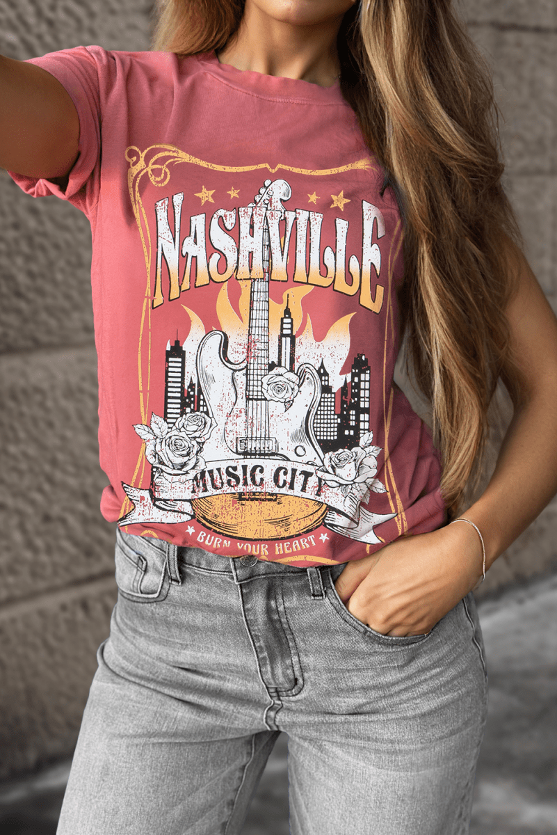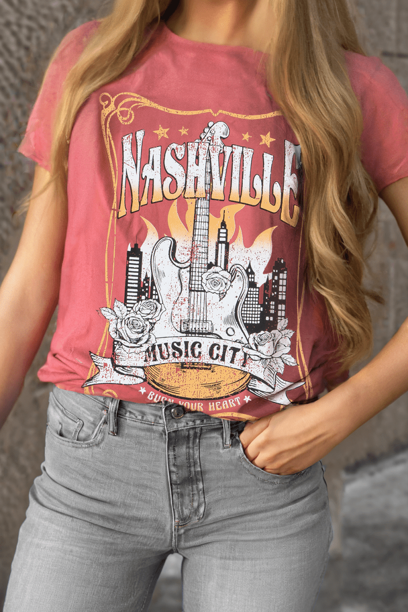 Mineral Red Nashville Music City Graphic Retro Fashion Tee - Love Salve